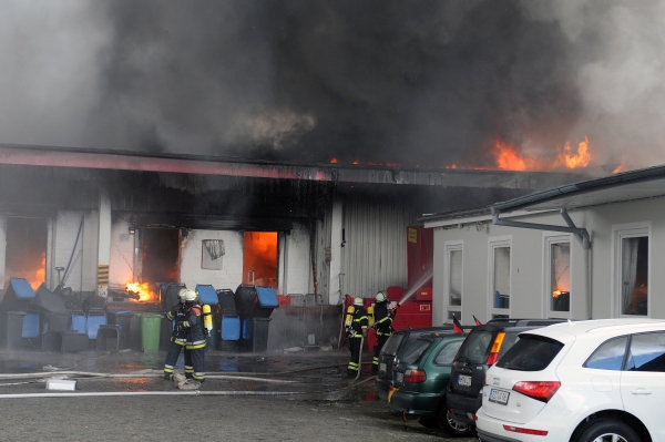 Am Abend waren immer noch ca. 100 Einsatzkärfte in mehreren Einsatzabschnitten vor Ort. Insgesamt waren zur Unterstützung der Berufsfeuerwehr 12 Freiwillige Feuerwehren eingesetzt. Erst am folgenden Morgen konnte der Brand als gelöscht betrachtet werden.