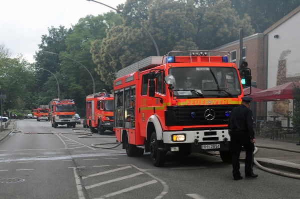 – Berufsfeuerwehren: Alsterdorf, Stellingen, Rotherbaum, Altona, div. Führungsdienste, Umweltdienst, Befehlswagen, WLF m. AB-Atemschutz, Rettungsdienst, sowie Kräfte zur Ablösung