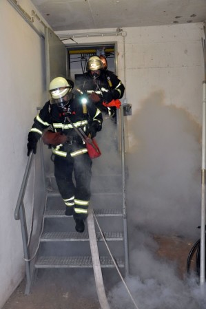 Die Rettungskräfte rückten von einem Bereitstellungsplatz nach dem AGBF Schutzziel aus, die Alarmierung übernahm die Übungsleitung vor Ort. Die ersten am Einsatzort angekommenen Kräfte begannen sofort unter Atemschutz mit der Menschenrettung. Die weiteren Kräfte unterstützten bei der Menschenrettung sowie der Brandbekämpfung und bauten eine Wasserversorgung auf. Die Einheiten des ASB übernahmen die Verletzten (diese waren sehr realistisch geschminkt worden) und versorgten diese durch Sanitäter und einen Notarzt. Kurz vor dem Ende der Übung wurde noch ein Atemschutzunfall simuliert, bei dem ein Atemschutzgeräteträger fiktiv bewusstlos wurde und durch die Kameraden aus dem Gefahrenbereich gerettet werden sollte. Ein Atemschutznotfall wird durch den Funkruf „Mayday, Mayday, Mayday“ angekündigt, damit der Funkverkehr sich auf die Rettung des verunfallten Kameraden konzentrieren kann. Alle Übungsteile der Einsatzübung wurden durch die Teilnehmer sehr gut abgearbeitet, auch die Zusammenarbeit der einzelnen Komponenten funktionierte bestens.