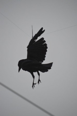 Krähe verfängt sich mit Angelsehne in 110.000 Volt Hochspannungsleitung.