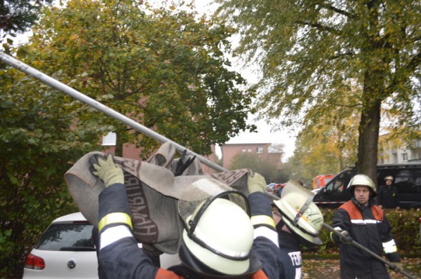Die alarmierte Freiwillige Feuerwehr Hamburg Billstedt-Horn erkundete die Lage und forderte zur Unterstützung den örtlichen Energieversorger Vattenfall an, um die Stromleitung, auf der 110.000 Volt liegen, abzuschalten und sicherzugehen, dass bei der Rettung des Tieres niemand durch einen möglichen Stromschlag zu schaden kommt.
