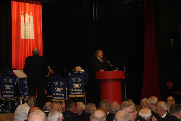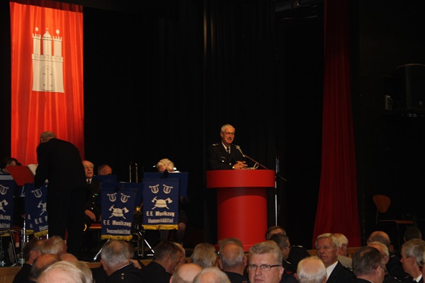 Danach sprach er noch kurz die aktuellsten Themen an zum Beispiel, das AGBF-Schutzziel, die neuen V-Force Schutzanzüge sowie aktuelles von der Jugendfeuerwehr Hamburg. Darauf folgte wieder ein Musikstück des Musikzuges, bevor Amtsleiter Klaus Maurer noch kurz etwas sagte. Unter anderem lobte er die Zusammenarbeit zwischen der Freiwilligen Feuerwehr und der Berufsfeuerwehr.