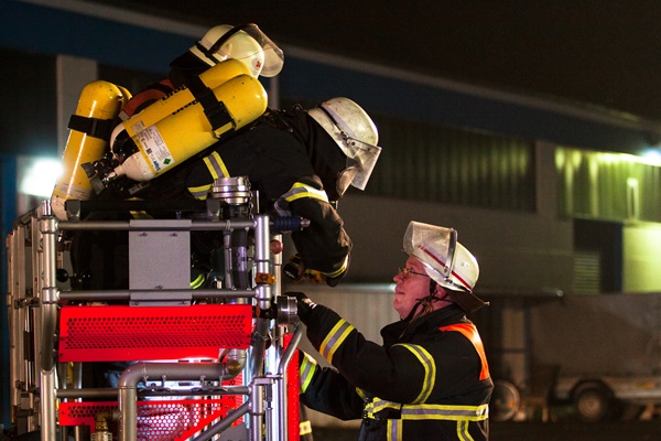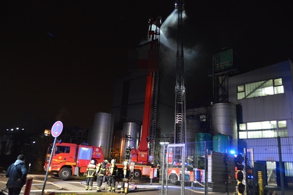Gegen 03:20 Uhr wurde die Feuerwehr durch die automatische Brandmeldeanlage eines ölverarbeitenden Betriebes alarmiert. Beim Eintreffen der Feuerwehr brannte eine Produktionsanlage für Fettsäuren im Dachbereich in ca. 20 Meter Höhe. Die Feuerwehr nahm zwei Werfer über Teleskopmastfahrzeuge und ein C-Rohr vor und konnte das Feuer an der Produktionsanlage, sowie ein Folgefeuer am Boden schnell löschen, bevor dieses sich weiter ausbreiten konnte. Ein Betriebsangehöriger musste mit einer leichten Rauchgasinhalation rettungsdienstlich erstversorgt und anschließend in ein Krankenhaus befördert werden. Die Anlage wurde durch den Betreiber abgeschiebert und durch die Feuerwehr weiter gekühlt. Die Polizei hat die Ermittlungen zur Brandursache aufgenommen.