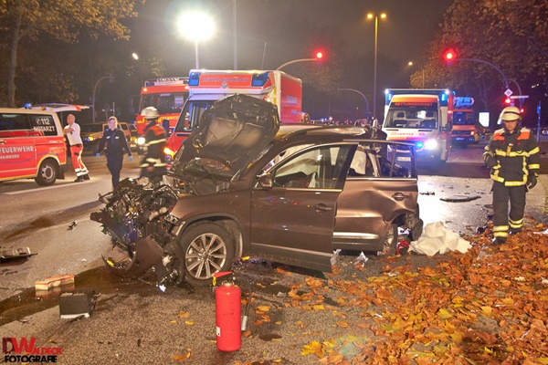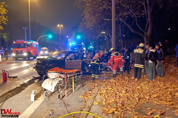 Aus ungeklärter Ursache kam es gegen 1 Uhr zu einem Verkehrsunfall zwischen zwei PKW, bei dem insgesamt fünf Personen teilweise schwer verletzt wurden. Eine Person war in einem PKW eingeklemmt, so dass die Feuerwehr sie mit hydraulischem Rettungsgerät aus dem PKW befreien musste. Zwei weitere Personen waren lebensgefährlich verletzt und bedurften notärztlicher Versorgung. Nachdem die Feuerwehr die Verunfallten notärztlich versorgt hatte, beförderte sie diese in umliegende Krankenhäuser. Die Polizei hat die Ermittlungen zur Unfallursache aufgenommen.