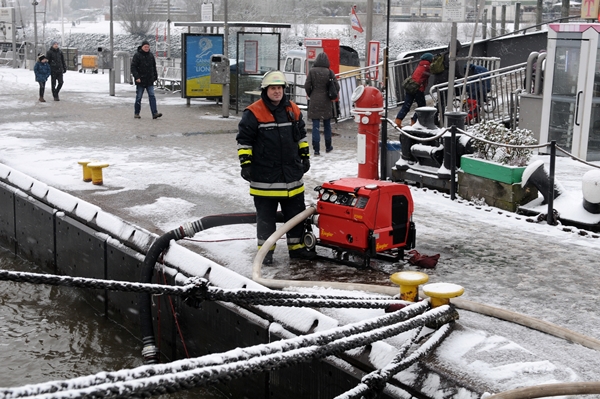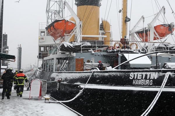 Nachdem wir uns mit diesem Thema bereits an einem Dienstabend beschäftigt haben, ging es am 24. Januar 2015 nun zum Übungsobjekt: über 51m lang, knapp 13,5m breit, 1138t schwer und 1933 erbaut – der Dampfeisbrecher Stettin im Museumshafen Oevelgönne.