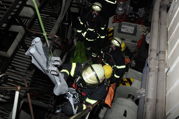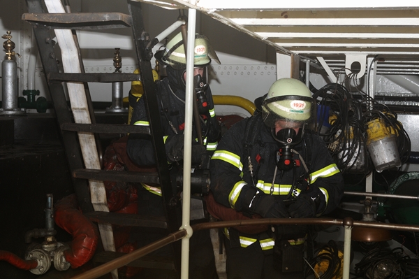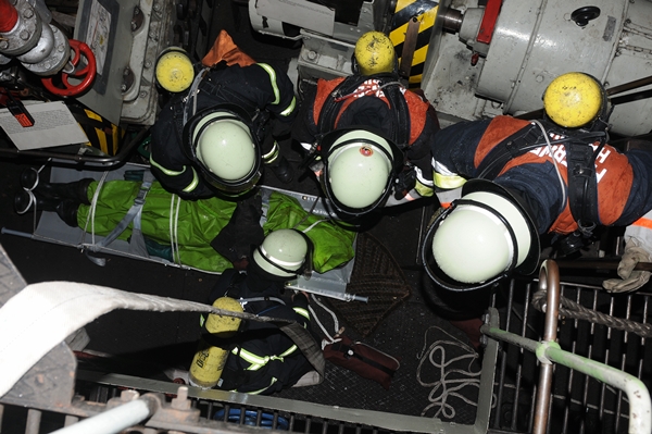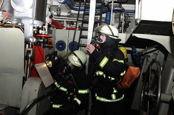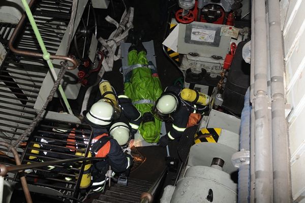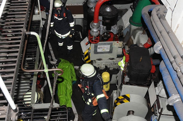 "Feuer auf dem Schiff, eine Person vermisst, beide Angriffstrupps zur Personenrettung in den Maschinenraum über den seitlichen Zugang, vor!" So oder so ähnlich lautete der Einsatzbefehl für die beiden Angriffstrupps der FF Stellingen.