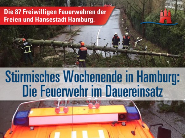 Die rund 2.500 Freiwilligen Feuerwehrleute in Hamburg stemmten in Zusammenarbeit mit der Berufsfeuerwehr dieses Hohe Einsatzaufkommen mit großem Engagement.