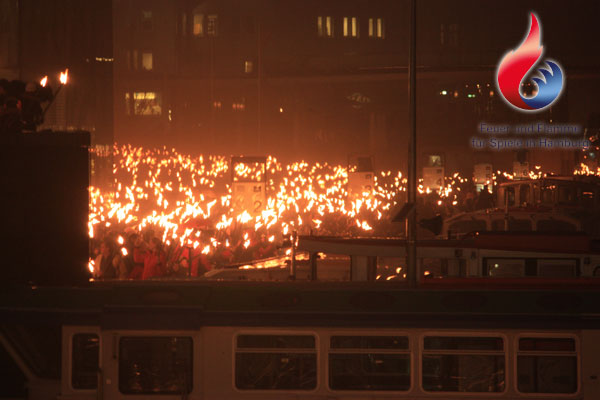 Die Freiwillige Feuerwehr Hamburg begleitete die Veranstaltung mit einer Brandwache, die durch die Freiwilligen Feuerwehren Pöseldorf, Winterhude, Lokstedt, Stellingen und Wandsbek-Marienthal gestellt wurde. Da einige Teilnehmer ihre Fackeln noch glühend in die vorher aufgestellten Container warfen, kam es für die eingesetzten Kräfte zu mehreren Kleinfeuern, die schnell gelöscht werden konnten.