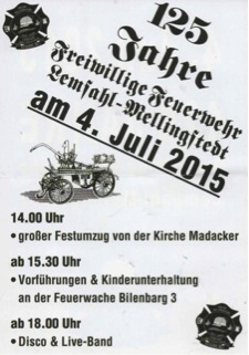 Am Samstag den 04.Juli 2015 öffnen sich die Pforten im Bilenbarg 3 bei der FF Lemsahl-Mellingstedt.