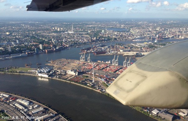 Allein schon vom Klang der zwei Kolbentriebwerke mit je 360 PS bekamen wir alle eine Gänsehaut. In zwei Gruppen hoben wir dann vom Flugplatz Uetersen ab und nahmen Kurs Richtung Hamburg.