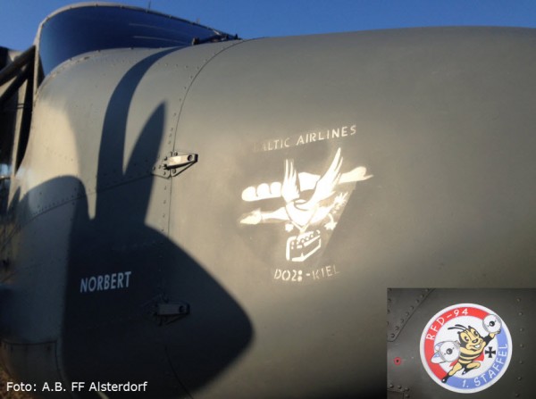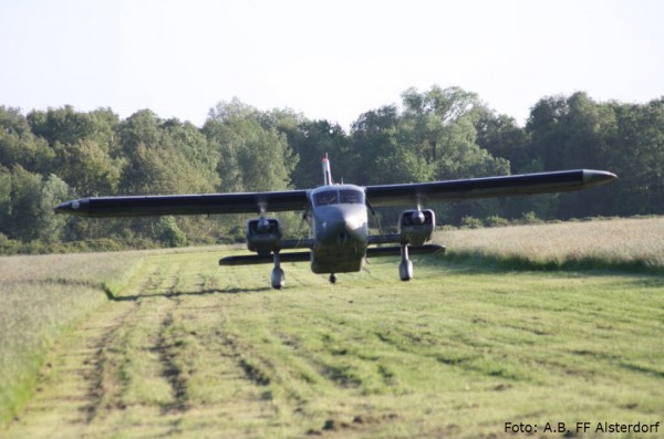 Unser „Einsatzfahrzeug“ war an diesem Abend eine alte DO-28 mit 2 Kolbenmotoren, lackiert in den Marine-Farben der Bundeswehr.