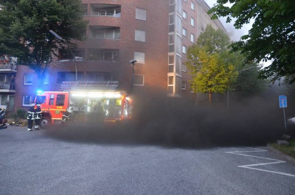 Aus ungeklärter Ursache kam es am Dienstag morgen, gegen 4:23 zu einem Brandausbruch in einem Hochbunker mit einer Höhe von ca. 25 Metern. Durch die erst eintreffenden Kräfte wurde die Alarmart auf FEU2 (Feuer, 2. Alarm), vom darauf eintreffenden Führungsdienst auf FEU3 und kurze Zeit später auf FEU4 erhöht. Auf Grund der starken Rauchentwicklung wurden 60 Bewohner aus umliegenden Gebäuden evakuiert und im Großraumrettungswagen der Feuerwehr Hamburg und HVV Bussen untergebracht und betreut.
