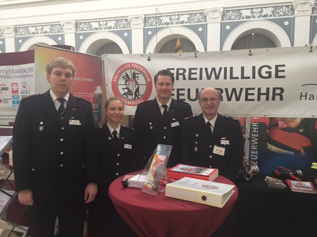 Die 87 freiwilligen Feuerwehren Hamburgs waren dieses Jahr zum dritten Mal auf der AKTIVOLI-Freiwilligenbörse in der Handelskammer Hamburg vertreten. Hier hatten alle Bürgerinnen und Bürger die einmalige Gelegenheit, sich über das bürgerschaftliche Engagement in Hamburg zu informieren. Die Freiwillige Feuerwehr Hamburg hatte so die Möglichkeit mit vielen der Besucher ins Gespräch zu kommen. Ein großer Dank an die Hamburger Feuerkasse die wieder, wie auch im vergangenen Jahr, großzügig „give aways“ gesponsert hatte.