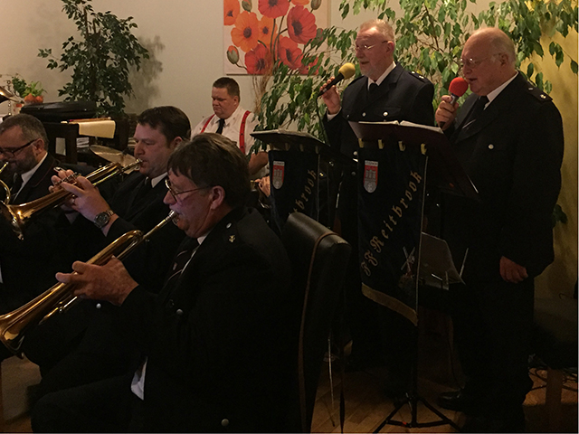 Nach dem offiziellen Akt, folgte der gemütliche Teil des Abends. Bei guten Getränken und musikalischer Untermalung durch den Musikzug der FF Reitbrook, die wie immer die Stimmung anheizte, wurde über alte und neue Zeiten geplaudert.