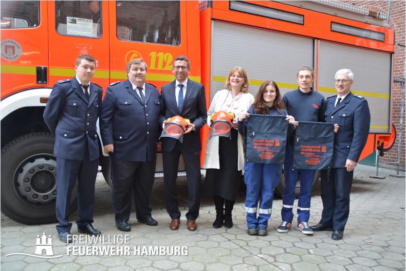 Am 23.03.2016 wurden der Freiwilligen Feuerwehr Hamburg von der Hamburger Feuerkasse neue Waldarbeiterhelme und Sporttaschen für die Jugendfeuerwehr übergeben.