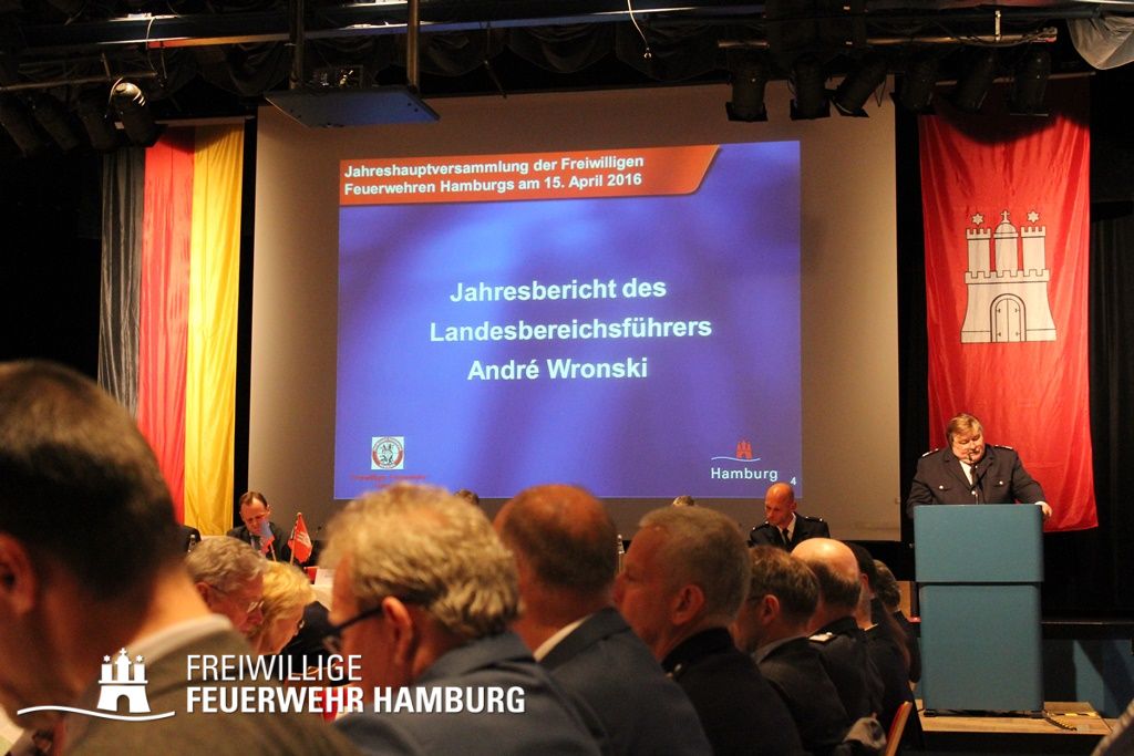 Bei der diesjährigen Jahreshauptversammlung der 87 Freiwilligen Feuerwehren drehte sich der Bericht des Landesbereichsführers um die Aufstellung des nächsten Doppelhaushaltes. André Wronski forderte von der Amtsleitung eine gerechte Behandlung der ehrenamtlichen Säule der Feuerwehr Hamburg ein und nannte die Probleme mit besonders hoher Dringlichkeit.