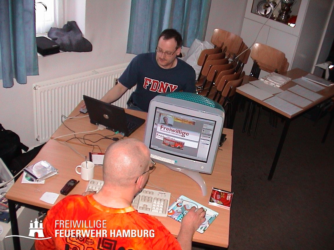 Entstanden aus einer „Wäre es nicht möglich …?“-Idee einiger Kameraden wurde mit heute historisch bedeutender Technik und aus eigenen Mitteln die Internetseite der FF Hamburg entwickelt. Der damaligen Führung eröffnete sich somit ein großes Stück „Neuland“, das bis heute von den Nachfolgern noch immer nicht ganz erforscht werden konnte. Dabei entstand zu eben diesem Zwecke im Jahre 2003, fünf Jahre nach der Inbetriebnahme der Website und nach einigen Reibereien, der „Arbeitskreis Internet“ – natürlich freiwillig, aber ebenso notwendig.