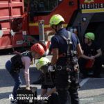 In zwei Zelten der Feuerwehr gab es ebenfalls spannende Aktionen. In einem Zelt bestand die Möglichkeit das Wissen in Erste Hilfe etwas aufzufrischen. Hier konnte an einer Puppe die Reanimation geübt werden. In dem anderen Zelt wurde in Sachen Brandschutzerziehung die Ausbreitung von Rauch in einem Rauchhaus gezeigt. Natürlich durfte auch eine Vorführung mit echtem Feuer nicht fehlen! Die Kids konnten mit einem Schlauch ein kleines Gasfeuer löschen und eine Fettexplosion bestaunen. Was die Kinder wohl am meisten begeisterte waren die Rundfahrten mit diversen Einsatzfahrzeugen und Blaulicht.
