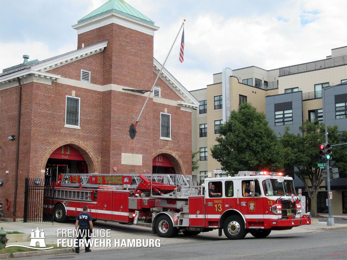 Ab dem. 12.9 ging es weiter mit dem Roadtrip und wir fuhren in Richtung Washington D.C. und machten unterwegs wieder einige Stopps, wie z. B. beim Morningside Volunteer Fire Department, Christiana Fire Department und beim Kentland Volunteer Fire Department. Hier hatten wir wieder Möglichkeit, uns deren Fahrzeuge und Geräte anzuschauen. Auch hier gab es wieder besondere Dinge wie z. B. einen Tiller Truck – dies sind Drehleitern als Sattelschlepper. In Washington D.C. angekommen, besuchten wir mehrere Feuerwachen und wurden auch zum typischen Essen der Firefighter eingeladen, nämlich Meetballs. Dies sind Hackbälle, italienische Würstchen und Nudeln mit Tomatensoße. Hier gab es Interessantes zum Thema Atemschutznotfall zu sehen. Hier gehört nämlich eine Strickleiter zur Standardausrüstung.