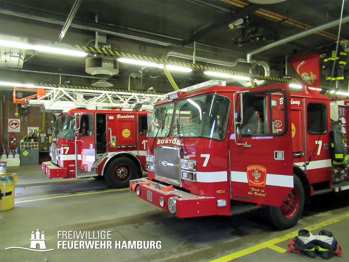 Der letzte Teil der Reise ging in Richtung Boston. Auch hier machten wir wieder einige Stopps, wie beim Portsmouth Fire Department und beim Wakefield Fire Department. Dieser Teil der Reise zeigte mal die ländlicheren Gegenden der USA um New Hampshire herum. In Boston angekommen, besuchten wir die Kollegen von Rescue 2. An dieser Wache wurden wir wieder sehr nett aufgenommen und verköstigt. In Boston machten wir wieder einige Wachen unsicher und schauten uns reichlich um. Auch hier gab es einige Specials zu sehen wie ein extra Halligan-Tool zur Türöffnung mit einer breiteren Schneide.