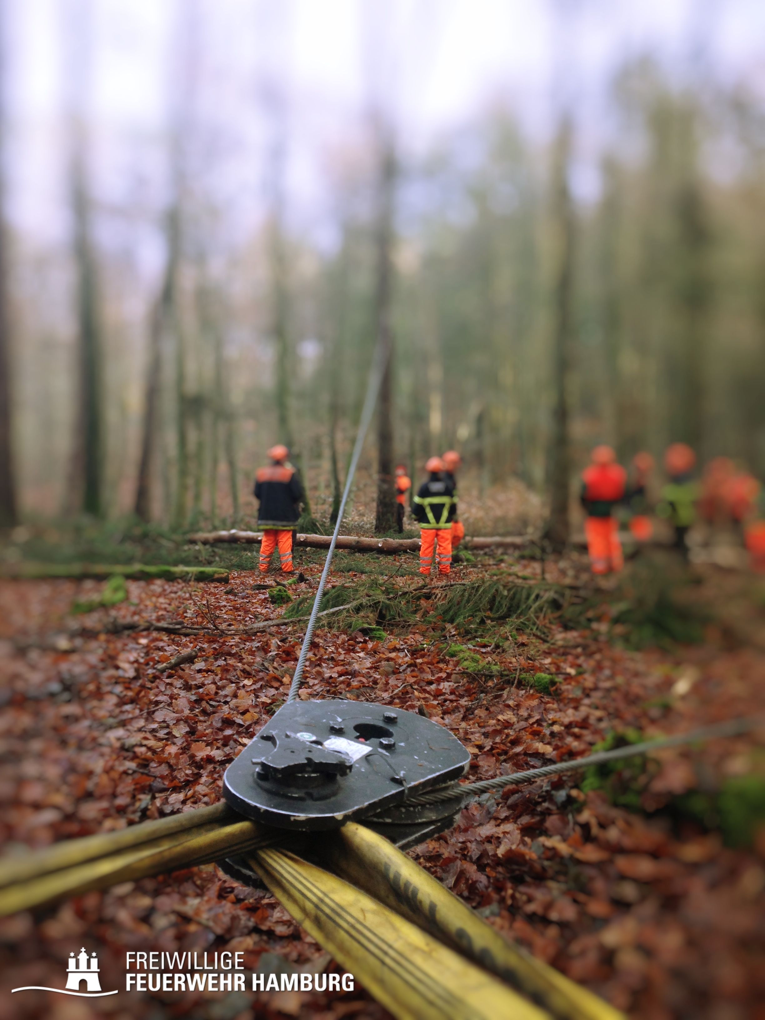 Mitte November wurde im Sachsenwald bei Hamburg das sachgerechte Fällen großer Bäume für den Einsatzdienst geübt.
