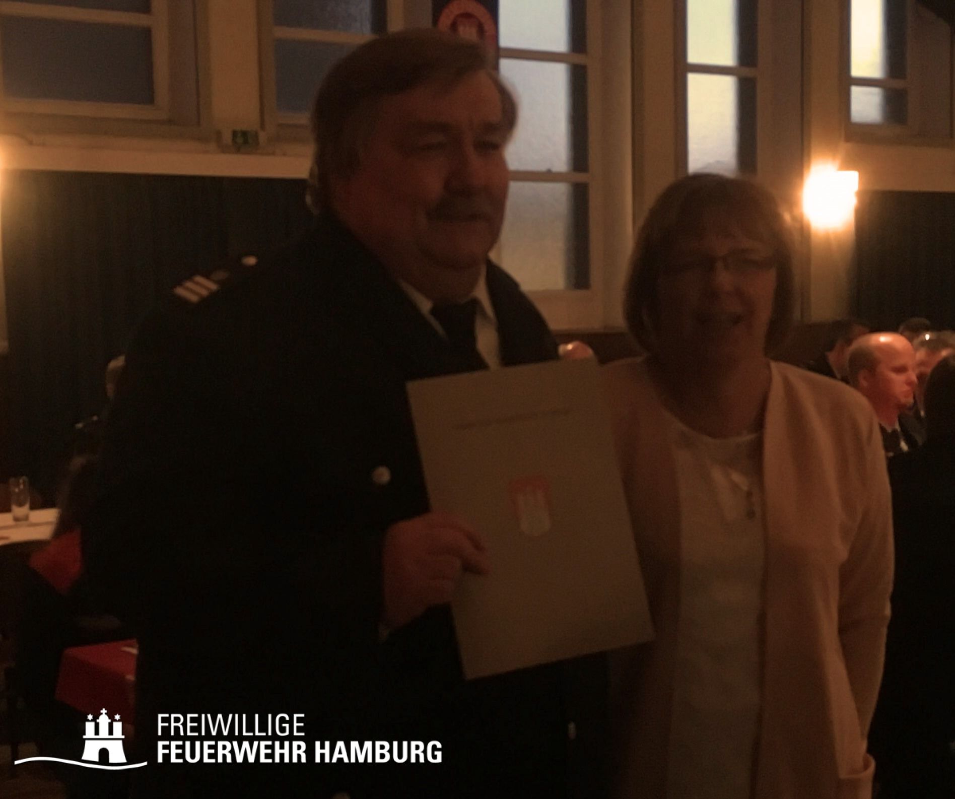 Aus diesem Grund hatte er für Sonnabend, den 17. März 2018, zu einer Feier in das Volkshaus Berne eingeladen. Unter den rund 200 Gästen konnte Stabsleiter Harald Burghart stellvertretend für den LBF insbesondere den Präses der Behörde für Inneres, Senator Andy Grote, den Vize-Präsidenten des Deutschen Feuerwehrverbandes, Herrn Karl-Heinz Knorr, den stellvertretenden Amtsleiter der Feuerwehr Hamburg, Herrn Stephan Wenderoth, die Amtsleiterin des Amtes A der Behörde für Inneres, Frau Johanna Westphalen, die Geschäftsführerin der Hanseatischen Feuerwehr Unfallkasse Nord, Frau Gabriela Kirstein, viele Vertreter aus der Landes- und Kommunalpolitik, aus den Landes- und Kreisfeuerwehrverbänden der benachbarten Bundesländer und Landkreise, aus den örtlichen Vereinen sowie die Führungskräfte der Bereichs- und Wehrführung der Freiwilligen Feuerwehr Hamburg begrüßen.