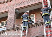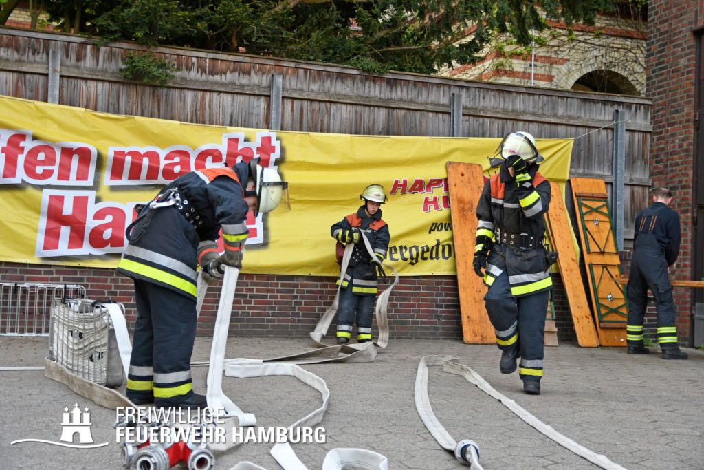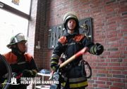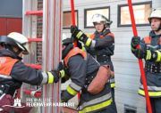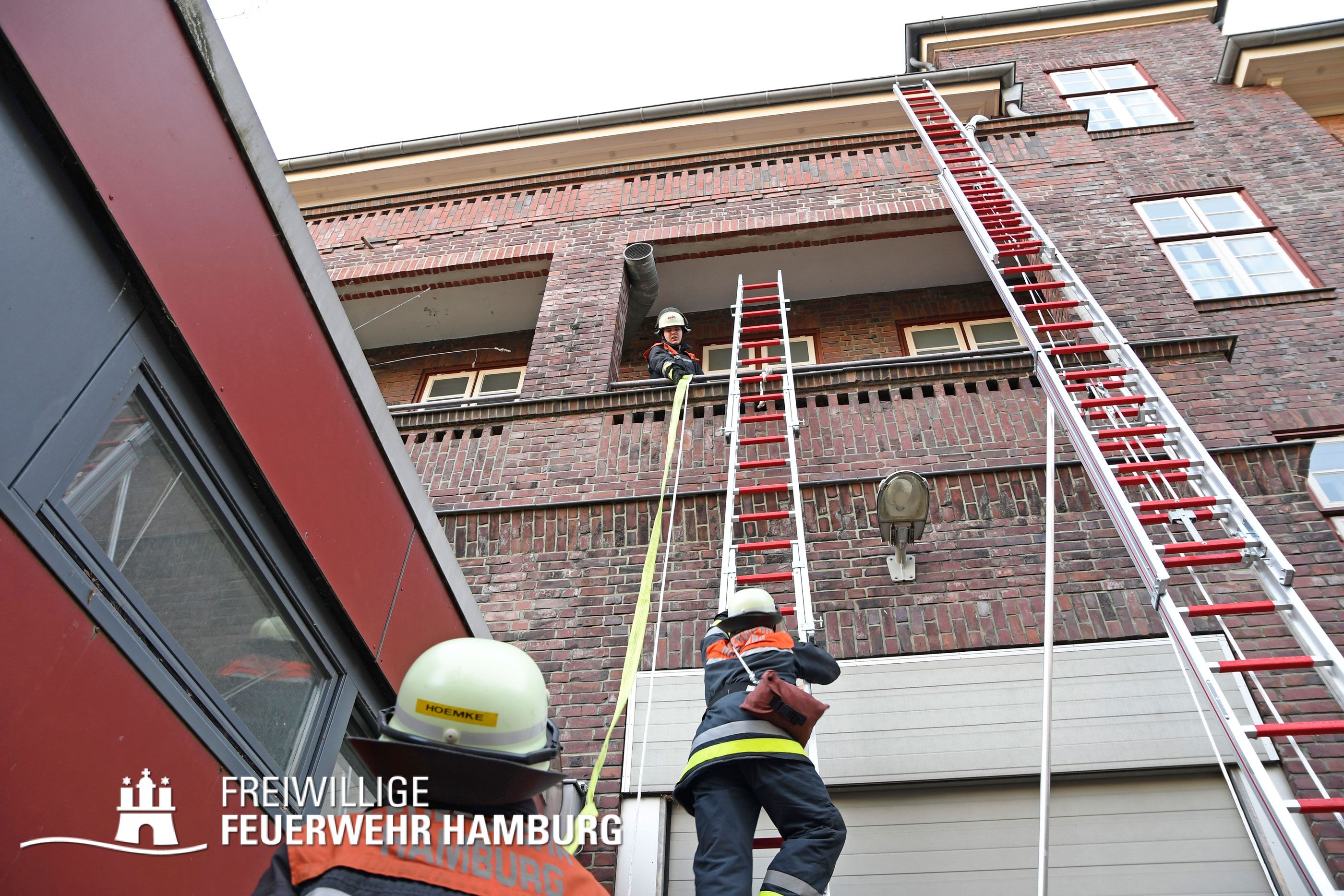 Schläuche ausrollen, Leiter aufstellen und die Leiter hinauf hieß es wieder für die Anwärter und Anwärterinnen der Grundausbildung im Bereich Bergedorf.