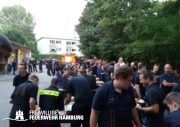 An diesem Abend stand bei den Wehren aus dem Bereich Wandsbek etwas anderes auf dem Plan, das traditionelle Bereichsfest stand wieder an. Bei gutem Wetter trafen sich die Kameradinnen und Kameraden aus den acht Wehren auf einem Betriebshof in Farmsen zusammen um dies gemeinsam zu verbringen. Neben den Kameradinnen und Kameraden der Einsatzabteilung war auch die Jugendfeuerwehr und Ehrenabteilung mit vertreten.