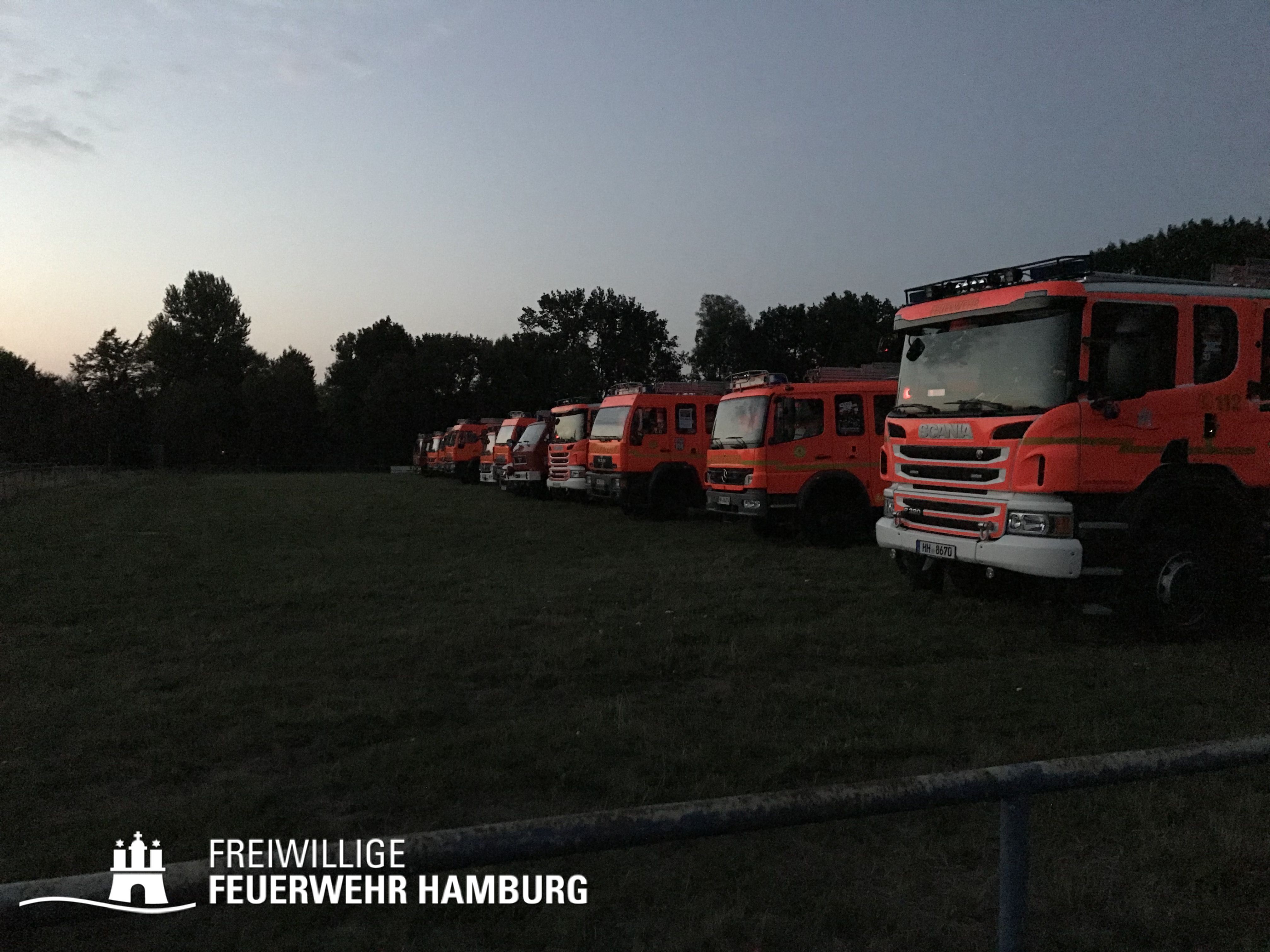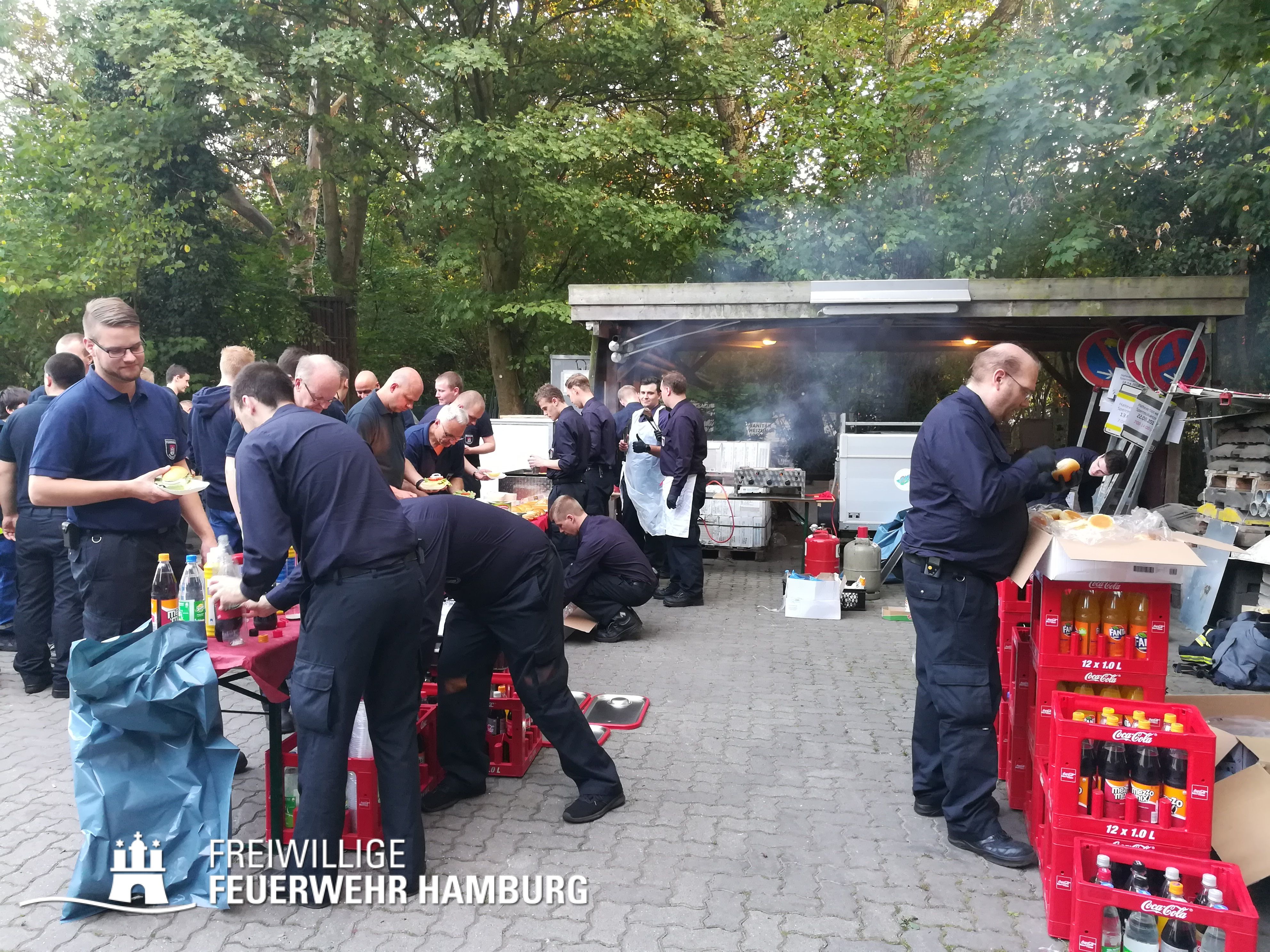 An diesem Abend stand bei den Wehren aus dem Bereich Wandsbek etwas anderes auf dem Plan, das traditionelle Bereichsfest stand wieder an. Bei gutem Wetter trafen sich die Kameradinnen und Kameraden aus den acht Wehren auf einem Betriebshof in Farmsen zusammen um dies gemeinsam zu verbringen. Neben den Kameradinnen und Kameraden der Einsatzabteilung war auch die Jugendfeuerwehr und Ehrenabteilung mit vertreten.
