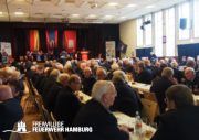 Rund 370 Gäste, unter denen neben den Ehrenmitgliedern auch zahlreiche Bereichs- und Wehrführer vertreten waren, fanden im Saal des Volkshauses Platz, welcher nach Aussage des ehemaligen Landesbereichsführers André Wronski mal ein Kino gewesen sei. Zu Beginn der Veranstaltung sprach Pastorin Erneli Martens dem Publikum mit einer Andacht zum Gedenken der im vergangenen Jahr verstorbenen Kameraden zu.