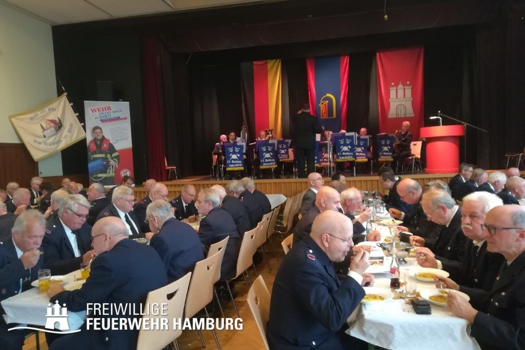 Die Verarbeitung so zahlreicher Informationen und Emotionen macht hungrig – zu aller Freude versorgte die FF Berne die Kameraden mit selbst zubereiteter Linsensuppe. Eine Abrundung des Treffens schaffte der gemeinsame Gesang der „Hammonia“.