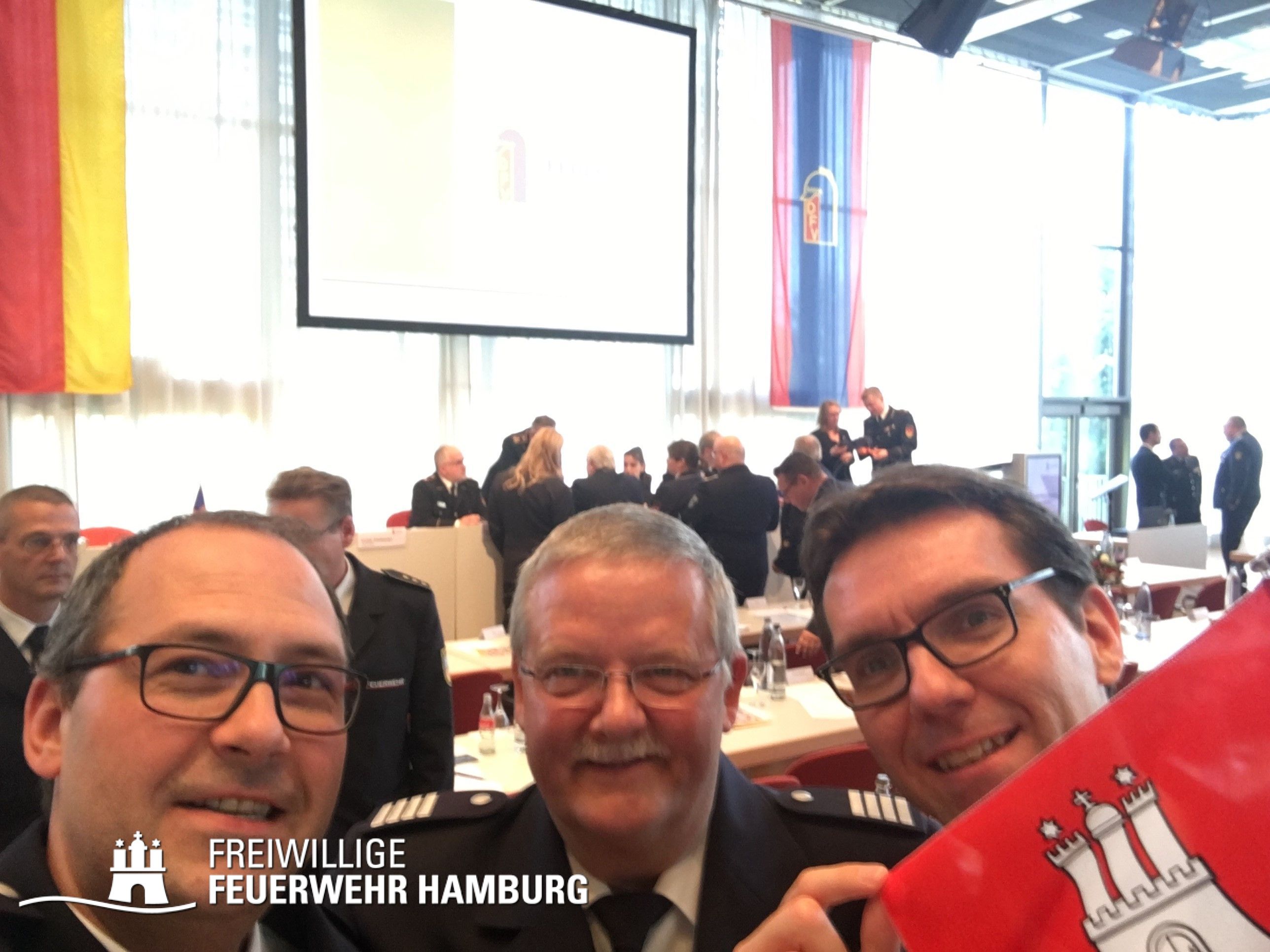 Die Freiwillige Feuerwehr Hamburg war mit Landesbereichsführer Harald Burghart, seinem Referenten Andreas Neven und Landesjugendfeuerwehrwart Kai Winter vor Ort.