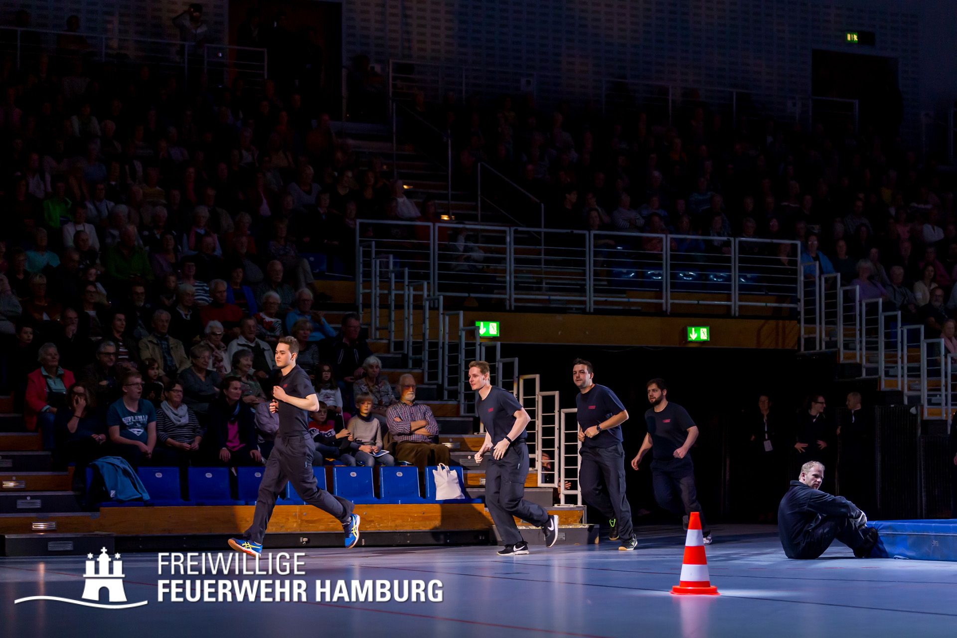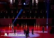Der Parcours traf die fünf Alsterdorfer Kameraden glücklicherweise nicht ganz unerwartet. Am Mittwochabend zuvor machten sie sich auf den Weg in die Alsterdorfer Sporthalle. Dort liefen gerade die Vorbereitungen für die 50. Polizei-Show. Die FF Alsterdorf hat an diesen Abend eine Einweisung in den Parcours bekommen und ihre „Gegner“ kennengelernt. Am Freitagvormittag galt es dann den Staffellauf einmal unter „Wettkampfbedingungen“ zu proben.