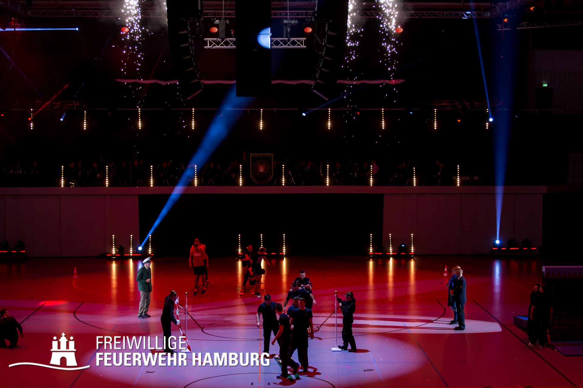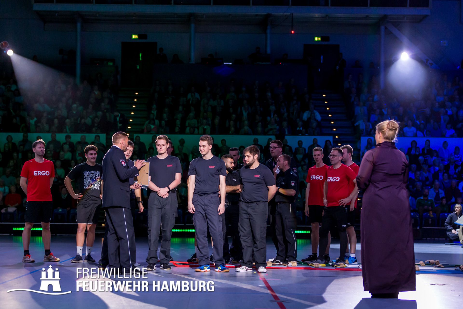 Fünf Kameraden der FF Alsterdorf durften hier vor 4.000 Zuschauern gegen die Teams der ERGO-Versicherung, Active-City und der Polizei Hamburg an die Startposition der „Jürgen-Roland-Staffel“ antreten. Bei der Jürgen-Roland-Staffel handelt es sich um einen Hindernisparcours der besonderen Art, der von vier Teams gegeneinander durchlaufen wird. Der Spaß für die Zuschauer und die Teams kommt dabei sicher nicht zu kurz.