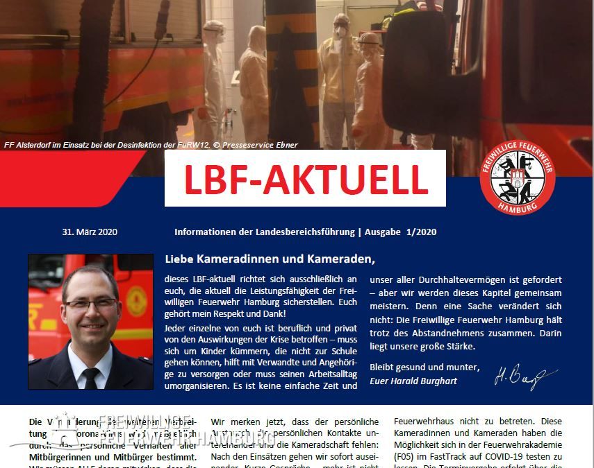 Die LBF-Aktuell 1/2020 wendet sich dieses Mal speziell an die Kameradinnen und Kameraden der Freiwilligen Feuerwehr Hamburg.