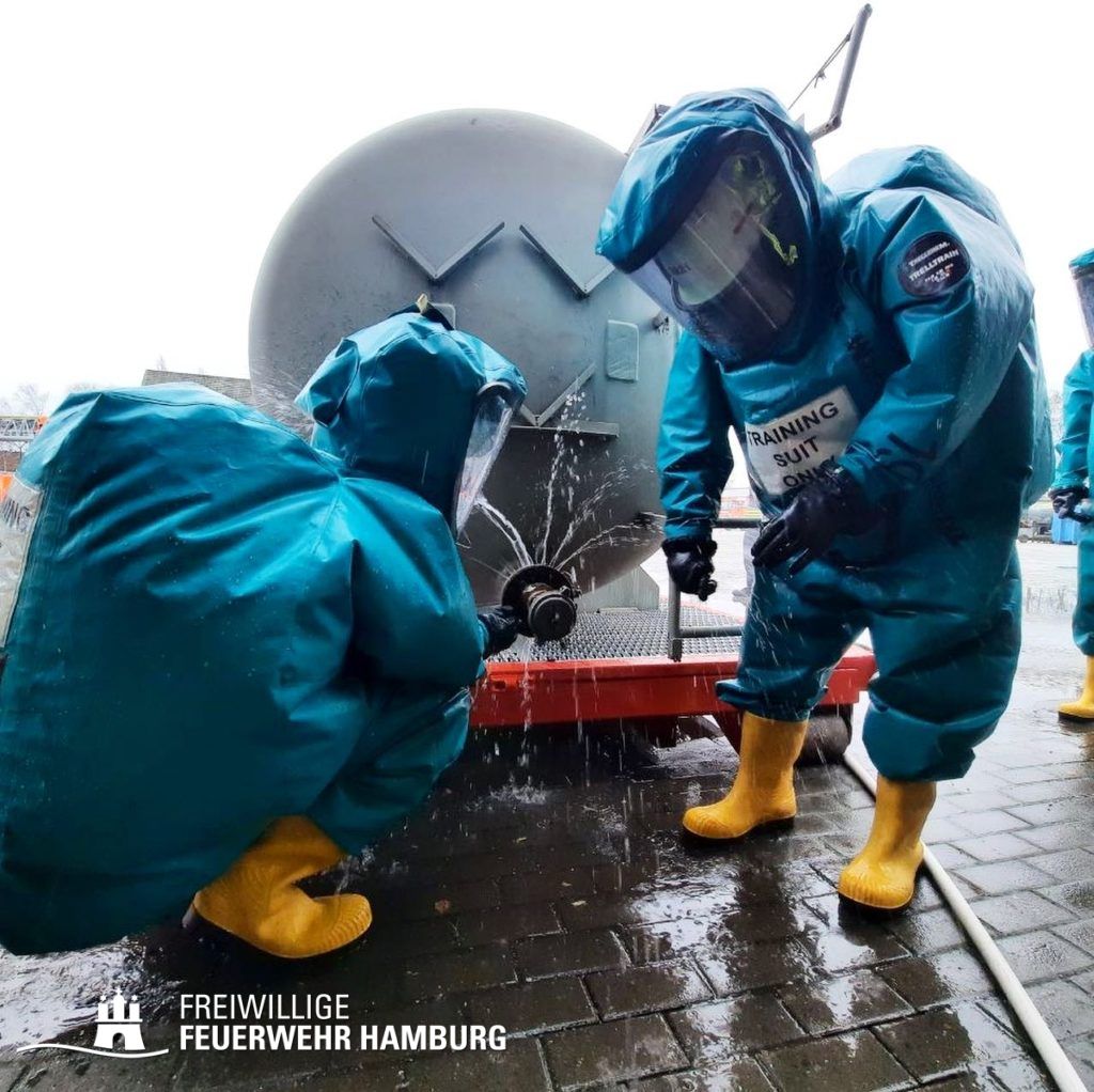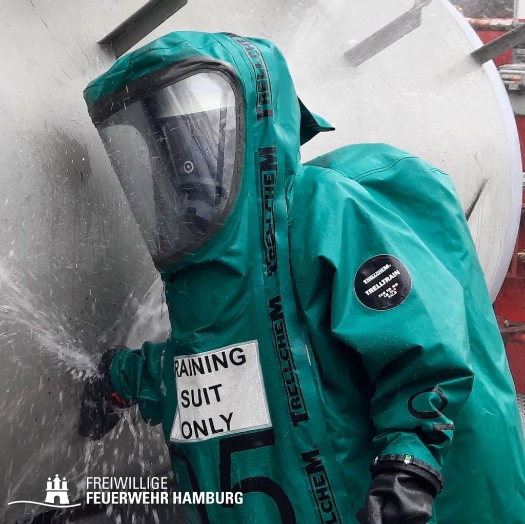 Bei Einsätzen mit Gefahrgut kommen unsere Dekon- sowie Spür- und Mess-Einheiten zum Einsatz. Bei solchen Einsätzen muss oft spezielle Schutzkleidung getragen werden, wie z.B. der Chemikalienschutzanzug, kurz: CSA. Hierfür ist eine besondere Ausbildung notwendig, welche acht unserer Kameradinnen und Kameraden am letzten November-Montag unter den geltenden Hygienevorschriften an der Feuerwehrakademie absolviert haben. Neben einer theoretischen Einweisung ging es auch um praktische Fertigkeiten, welche beim Tragen des Anzuges angeeignet werden mussten.