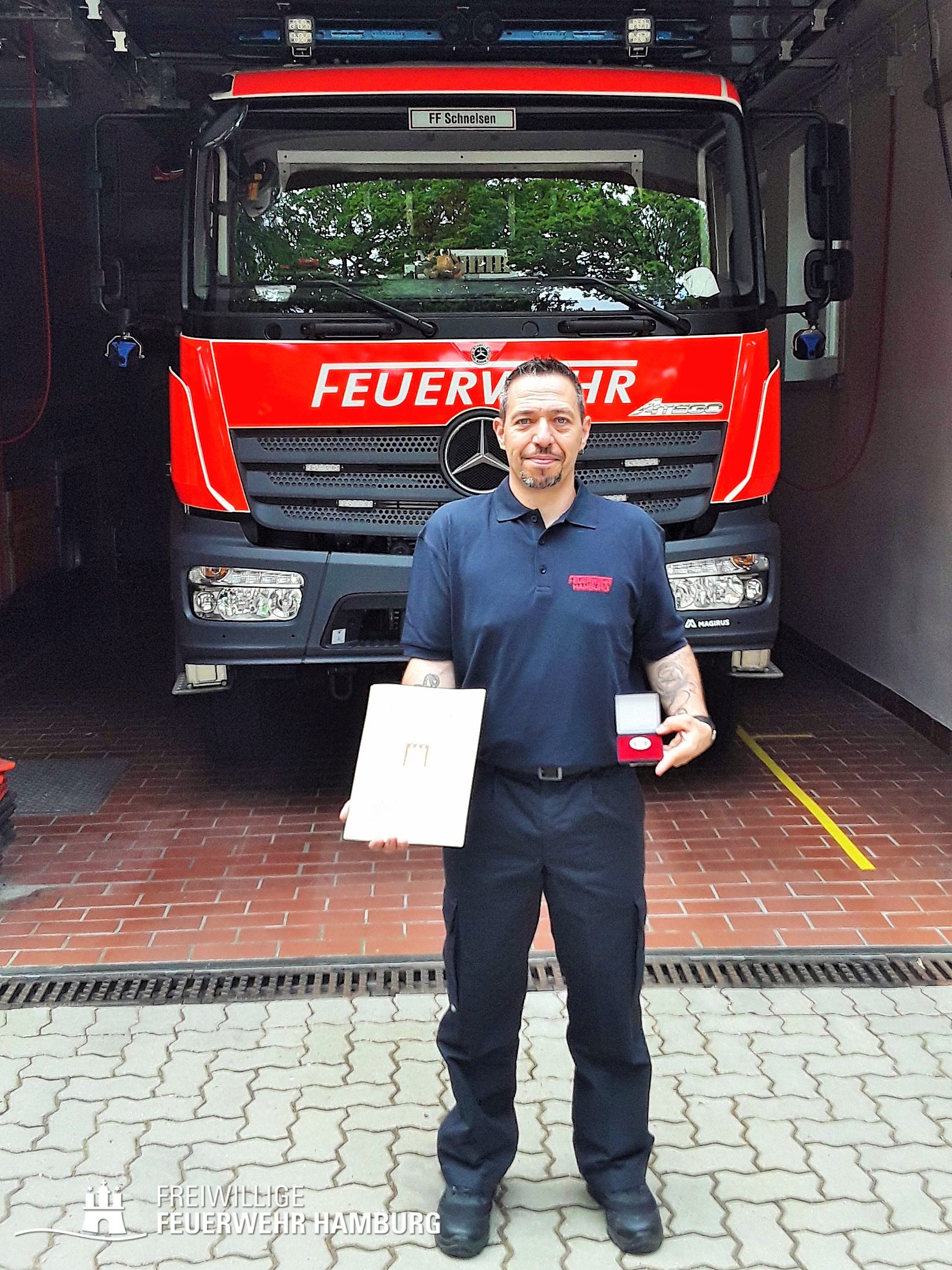 Außerdem nimmt er für das Toughest Firefighter Alive (TFA) Team der Feuerwehr Hamburg an Wettkämpfen teil. Beruflich ist der Jubilar als Werkfeuerwehrmann tätig.