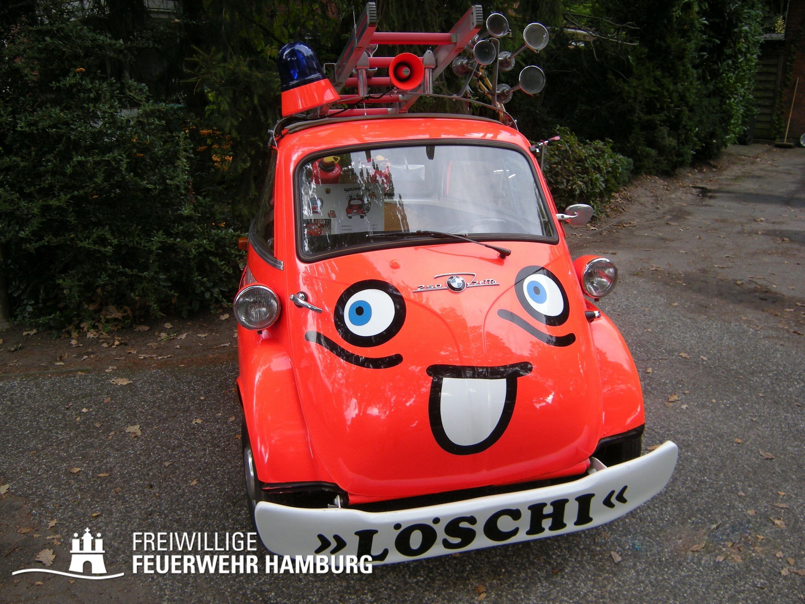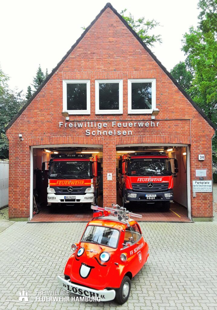 Die Idee für “Löschi” wurde 1978 zur Vorbereitung des 75-jährigen Bestehens der Freiwilligen Feuerwehr Schnelsen geboren. Es wurde seinerzeit ein besonderes Festlogo gesucht. Da entdeckte der Festausschuss bei einem Nachbarn eine abgetakelte BMW-Isetta: Schön, rund, niedlich und doch bescheiden.