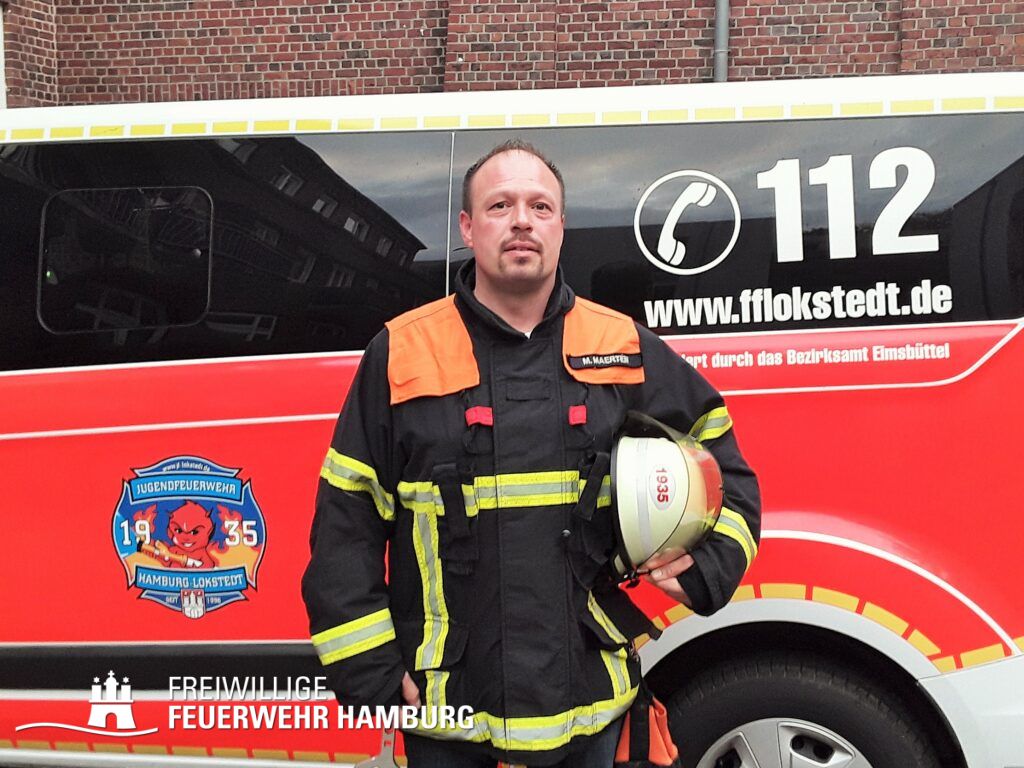 Weiterhin ist Mirko Maerten als Minifeuerwehrwart ab Ende 2020 zusätzlich für die in 2019 gegründete Minifeuerwehr Lokstedt verantwortlich. Auch seine Tochter ist mit großer Begeisterung inzwischen dort dabei. Beruflich ist er als Gas- und Wasserinstallateur tätig.