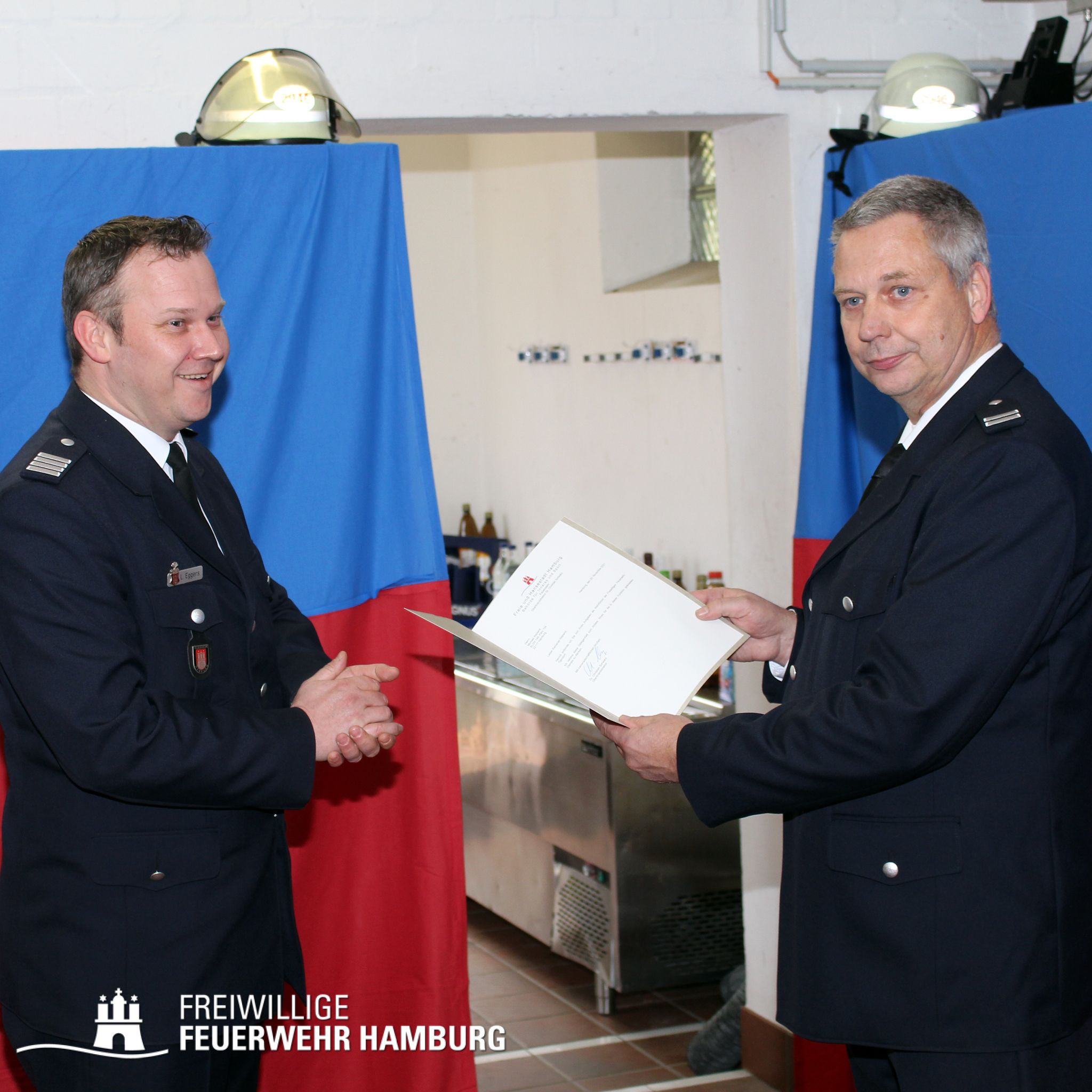 Die Ernennung führte der Bereichsführer Bergedorf, Lars Eggers, unter strengen Hygieneregeln nach 2G+ durch. Bereits im Oktober hatte der Fleischermeister Steven Zabel in der Wehrversammlung ein einstimmiges Wahlergebnis erhalten.