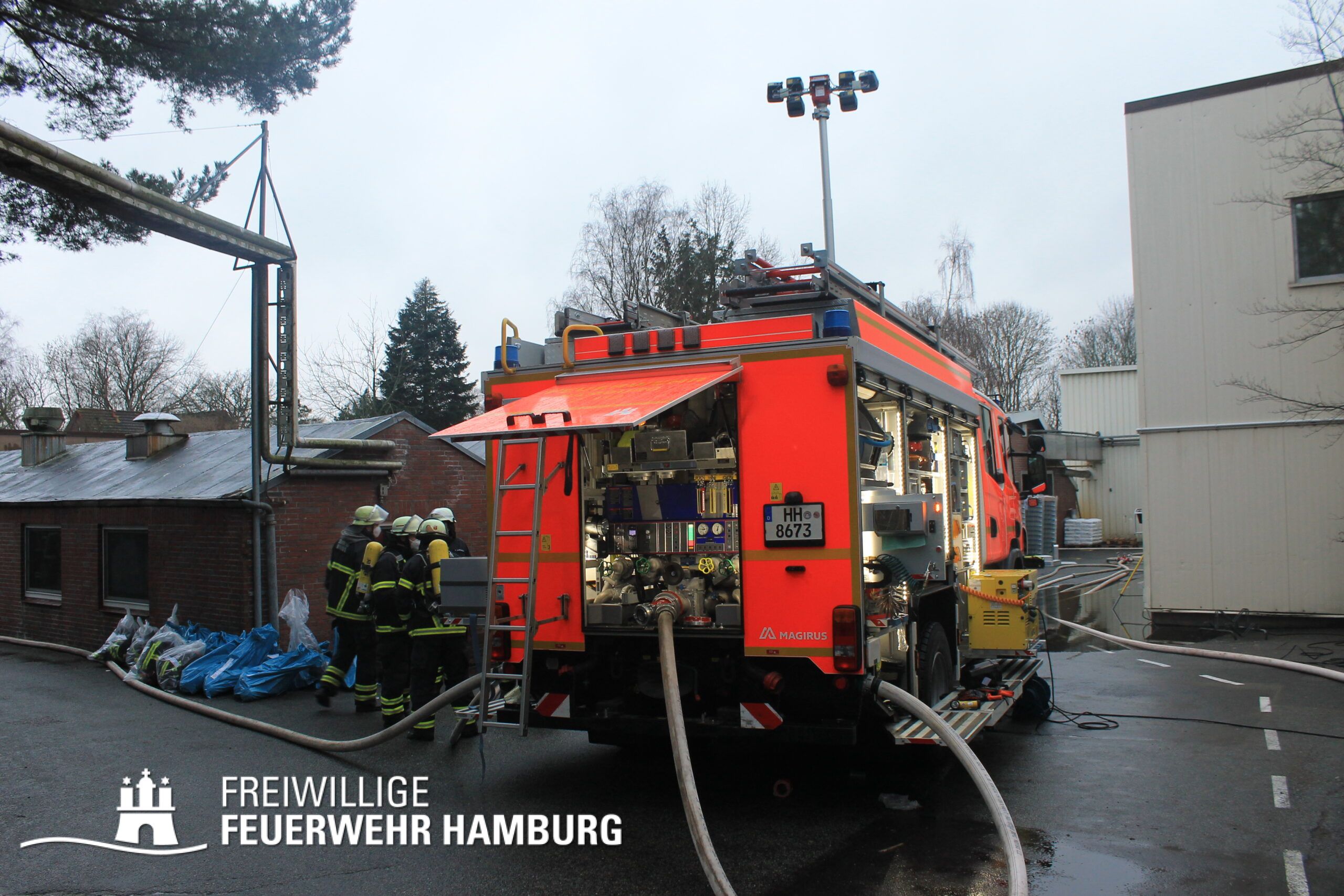 Ein Feuer in einem Lebensmittelbetrieb in Curslack entwickelte sich zum Großeinsatz (FEU3X) eine Lage, die nicht alltäglich war und auch Spezialkräfte von Berufs- und Freiwilliger Feuerwehr vor besondere Aufgaben stellte.