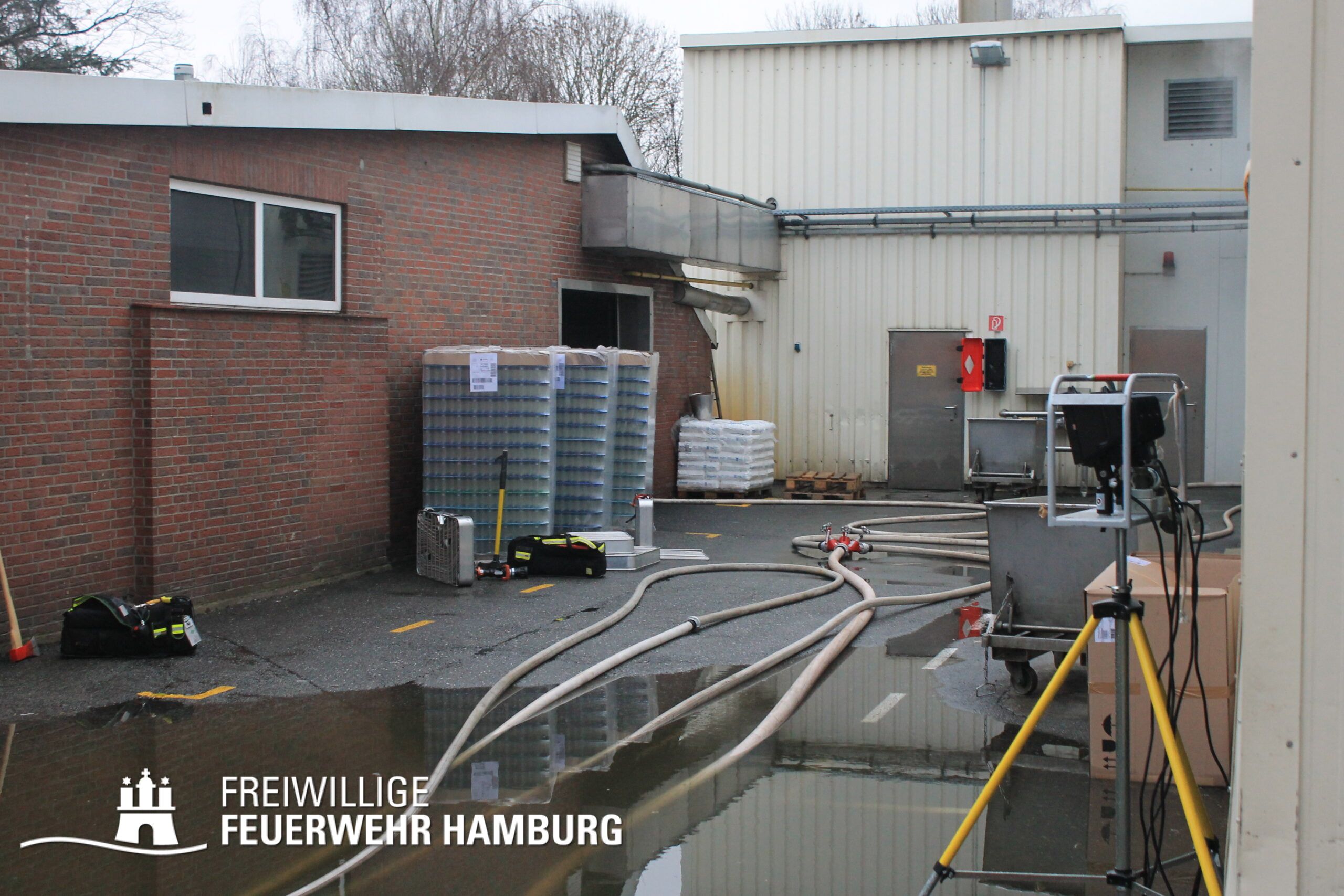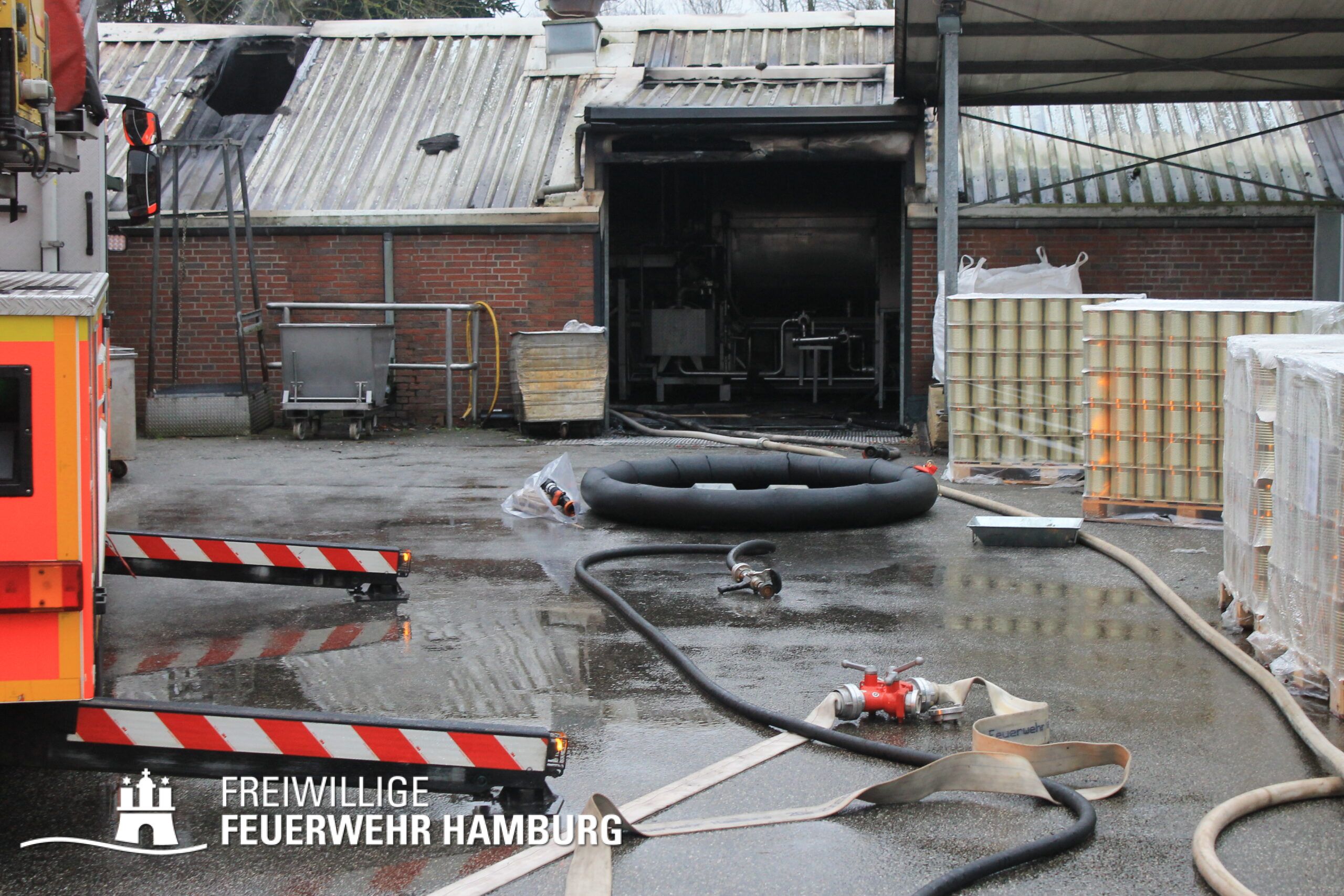 Feuer mit Gefahrstoff in einem Lebensmittelbetrieb in Curslack.