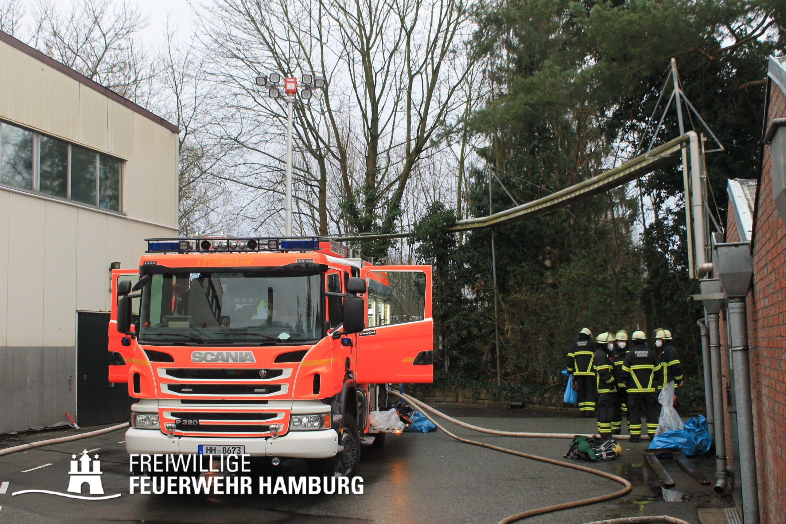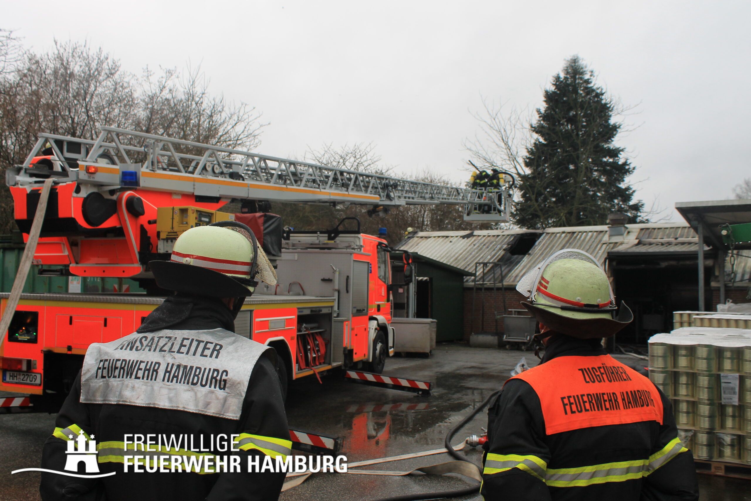 Die FF Bergedorf, FF Curslack und die Berufsfeuerwehr Bergedorf waren die erste Kräften vor Ort. Sie übernahmen die Brandbekämpfung, bei der insgesamt 3 C-Rohre im Innen und Außenangriff unter Atemschutz eingesetzt wurden. Einige Gefahrstoffgebinde waren teilweise geschmolzen und wurden in Gefahrgutwannen gestellt, um ein unkontrolliertes Austreten zu verhindern. Die Nachlöscharbeiten gestalteten sich aufgrund der Bauweise der Halle etwas schwierig und wurden über eine Drehleiter durchgeführt. Die FF Lohbrügge und FF Bergedorf unterstützte weiterhin mit ihren CBRN Messfahrzeugen und nahmen Messungen über Schadstoffe in der Luft vor. Hierbei stellte sich heraus, dass keine Gefahr für die Anwohner bestand. Die FF Neuengamme wurde im späteren Verlauf für die Nachlöscharbeiten alarmiert und unterstütze die Einsatzkräfte vor Ort. Für das leibliche Wohl sorgte die FF Eißendorf mit warmen und kalten Getränken sowie Snacks aus ihrem GW-Versorgung. Nach etwa 6 Stunden wurde der Einsatz beendet.