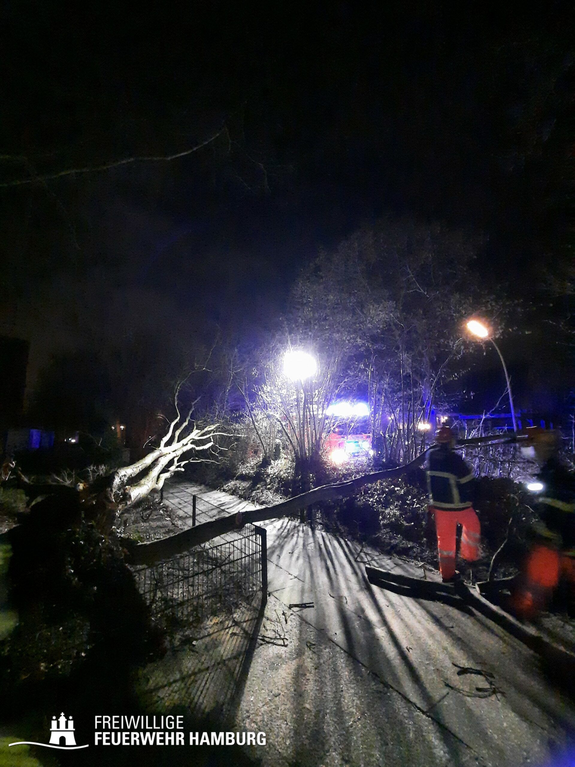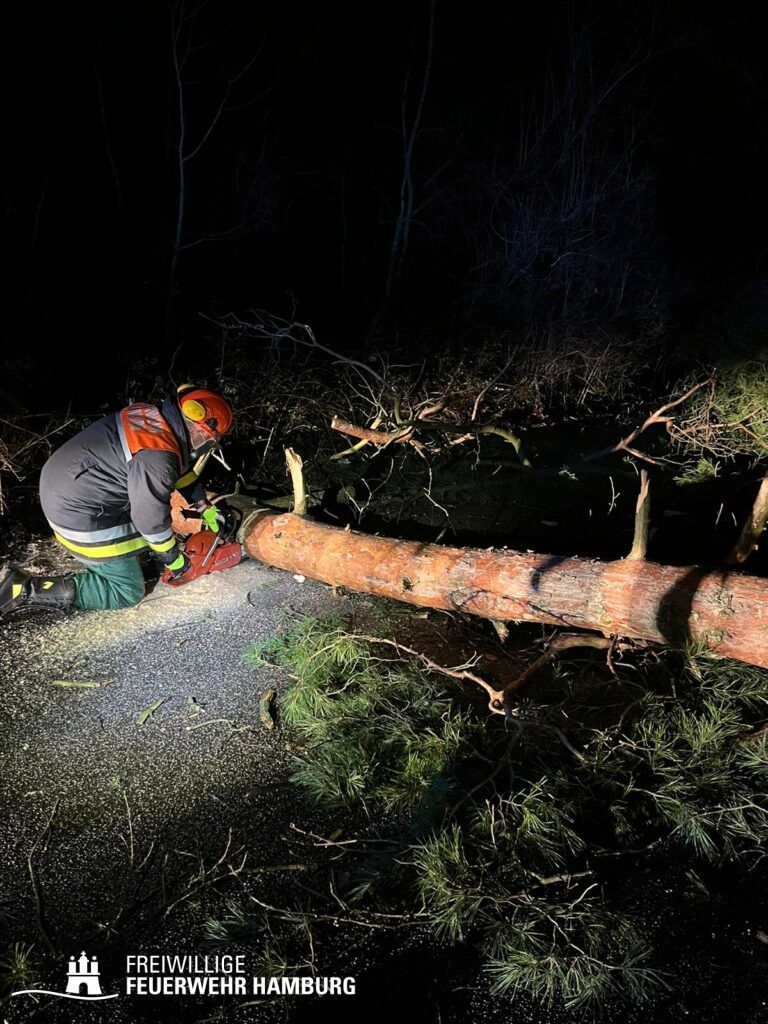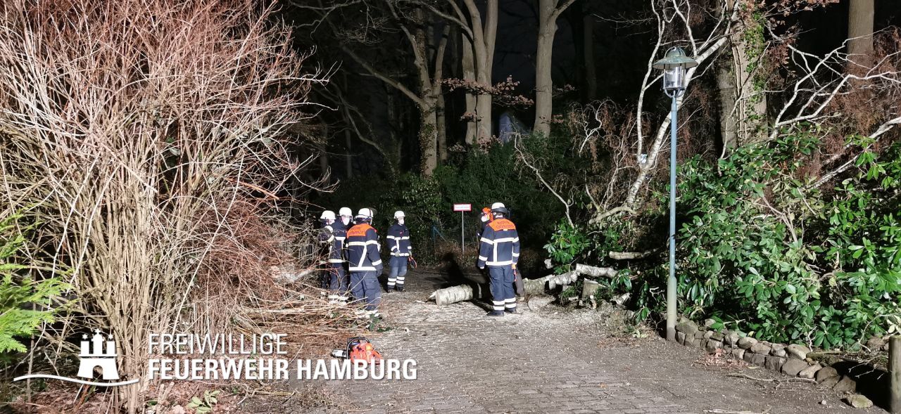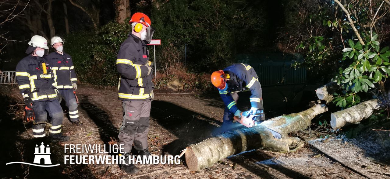 Unsere Wehren sorgten für die Gefahrenabwehr von Sturmschäden. Hierbei handelte es sich meistens um das Zersägen von umgestürzten Bäumen, herabgefallenen Ästen, umgestürzten Bauzäunen oder anderen Gegenständen sowie das Sichern von Dachteilen. Ebenfalls waren durch eine eingekeilte Schute an der Freihafenbrücke einige Kleinboote eingesetzt. Die GW R1 und RW 1 sorgten mit ihren Seilwinden beim Notfällungen für ein sicheres Arbeiten. Die FF Berliner Tor unterstützte die Einsatzzentrale beim aufbau eines Führungsstabes für das Hochwasser. Mehrere Bereichsführer wurden zur Entscheidungshilfe als Unterstützung der Wehren an die Einsatzstellen alarmiert. Die Landesbereichsführung wurde zu Beginn des Sturms als Fachberater FF in die Leitstelle geordert.
