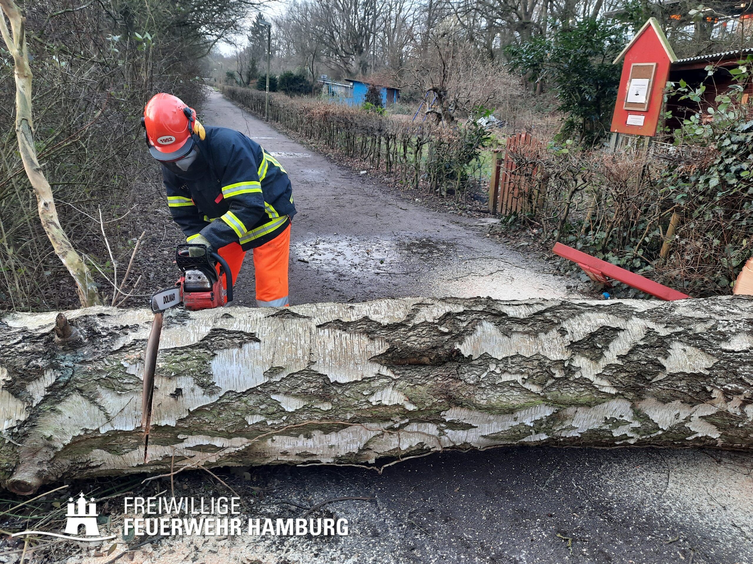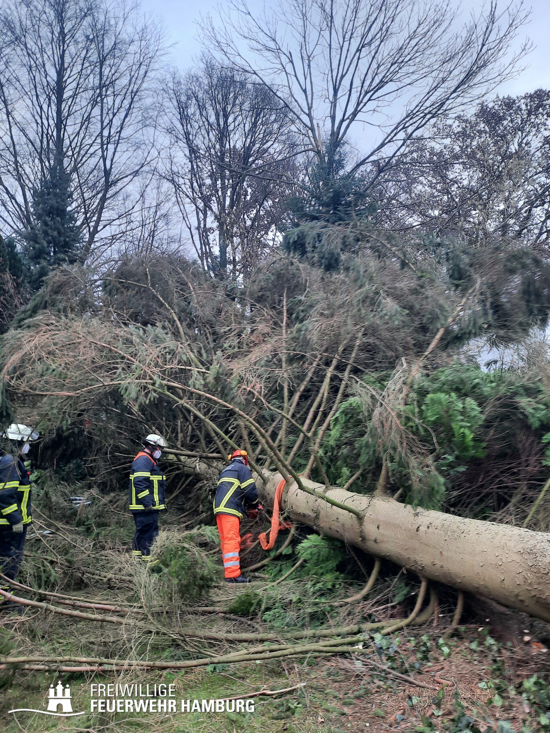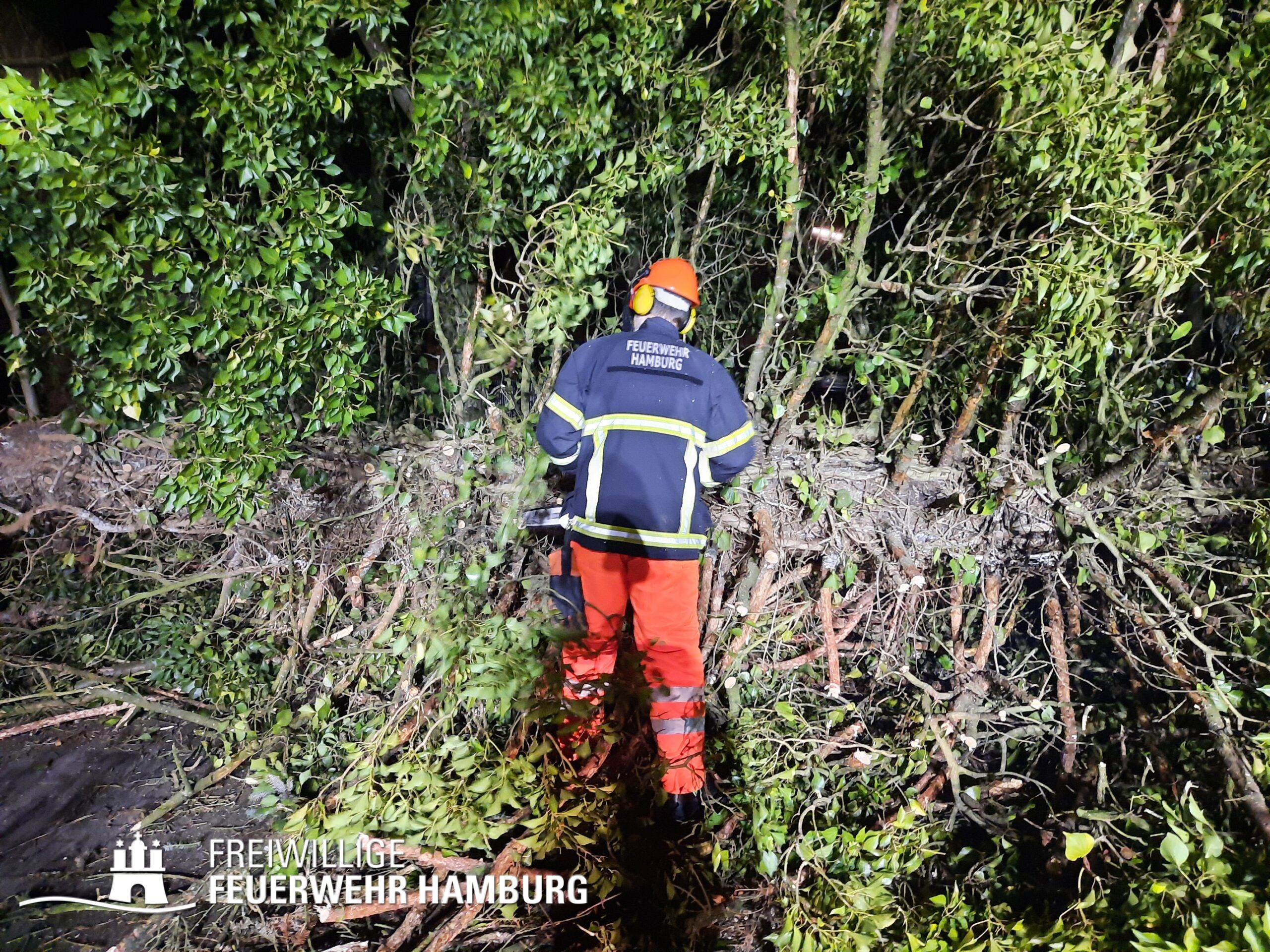 Unsere Wehren sorgten für die Gefahrenabwehr von Sturmschäden. Hierbei handelte es sich meistens um das Zersägen von umgestürzten Bäumen, herabgefallenen Ästen, umgestürzten Bauzäunen oder anderen Gegenständen sowie das Sichern von Dachteilen. Ebenfalls waren durch eine eingekeilte Schute an der Freihafenbrücke einige Kleinboote eingesetzt. Die GW R1 und RW 1 sorgten mit ihren Seilwinden beim Notfällungen für ein sicheres Arbeiten. Die FF Berliner Tor unterstützte die Einsatzzentrale beim aufbau eines Führungsstabes für das Hochwasser. Mehrere Bereichsführer wurden zur Entscheidungshilfe als Unterstützung der Wehren an die Einsatzstellen alarmiert. Die Landesbereichsführung wurde zu Beginn des Sturms als Fachberater FF in die Leitstelle geordert.