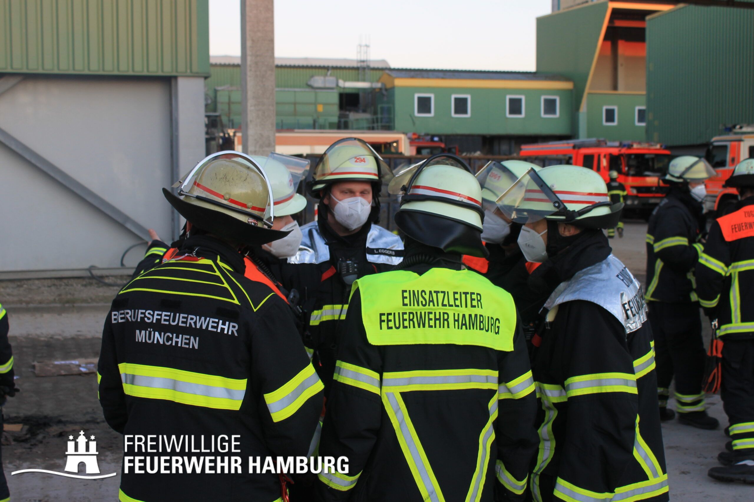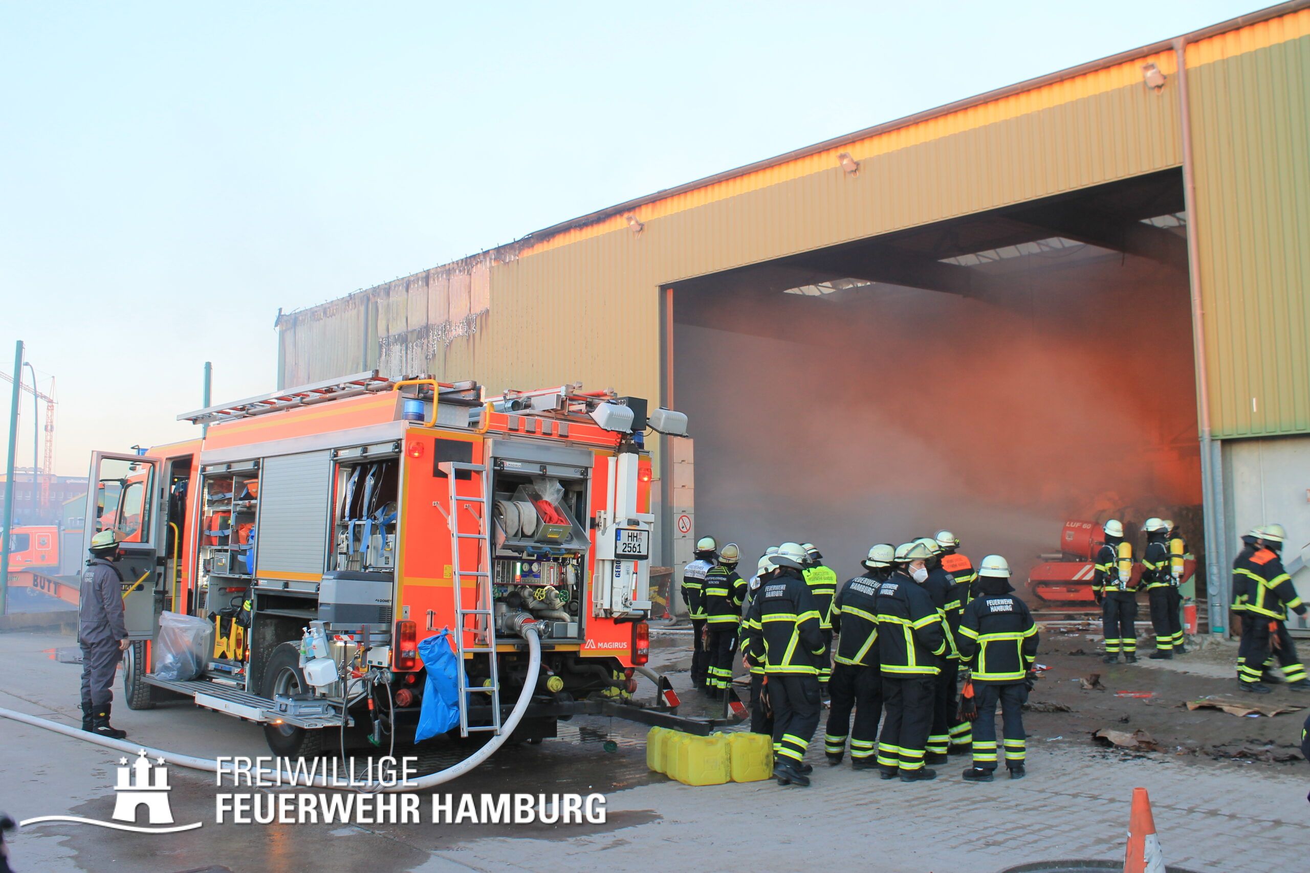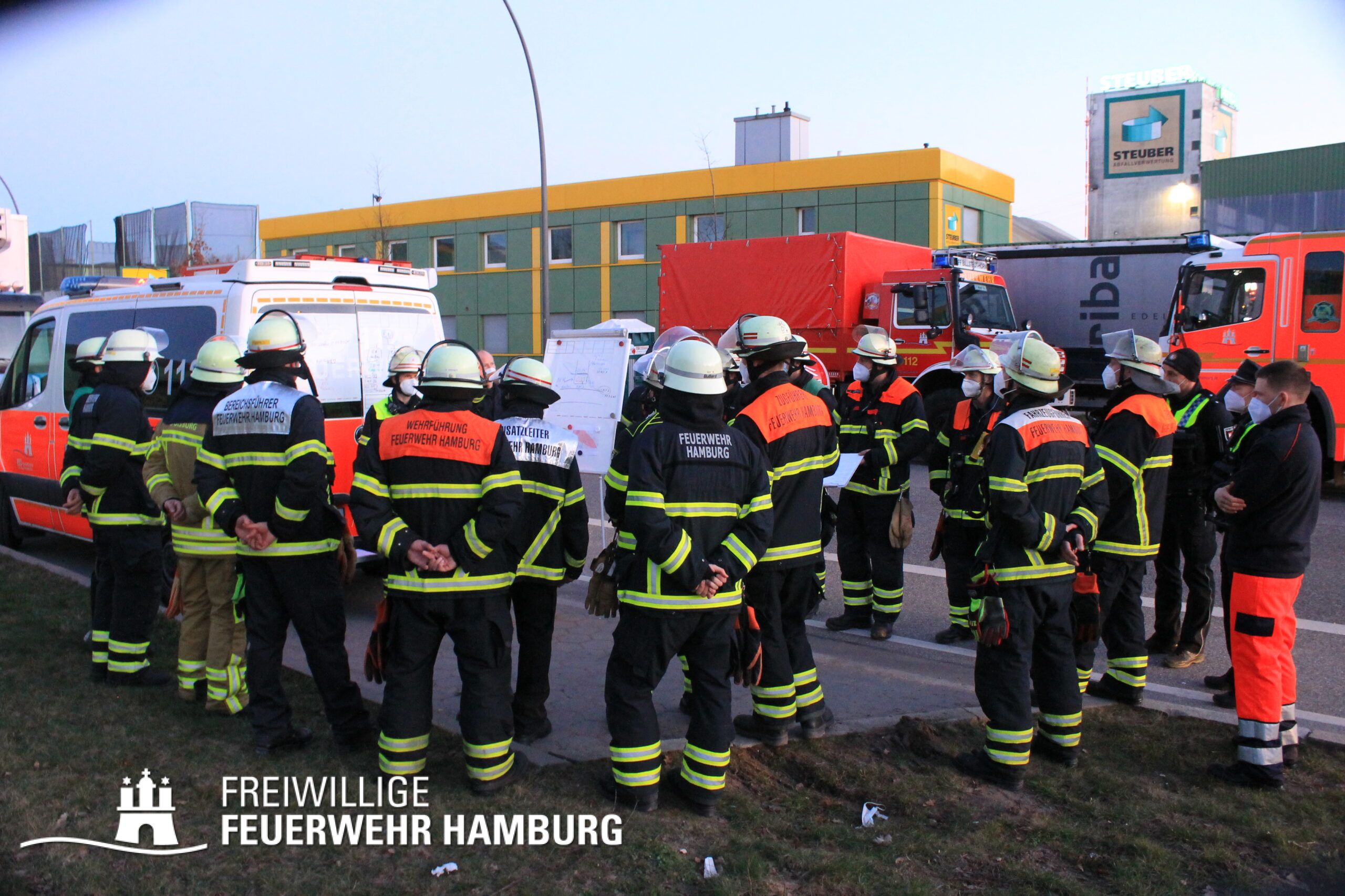Neben dem Bereichsführer Bergedorf und Vierlande, welche für die Einsatzleitung seitens der Freiwilligen Feuerwehr vor Ort waren, unterstützte die FF Bille und Berliner Tor mit ihrem Personal sowie den GW-FM und dem Anhänger Führung und Lage. Die Wehren Billstedt Horn und Allermöhe Billwerder wurden zur direkten Brandbekämpfung eingesetzt. Für eine ausreichende Wasserversorgung sorgten die FF Fünfhausen und FF Barmbek mit ihren Schlauchwagen. Um Umweltgefahren in der Luft auszuschließen wurden die FF Lohbrügge und FF Bergedorf mit ihren CBRN Erkundern für Messfahrten in der Umgebung alarmiert. Die FF Warwisch sorgte mit ihrem Lichtmastanhänger für ausreichende Beleuchtung an der Einsatzstelle. Für die Versorung der Einsatzkräfte setzte die FF Eißendorf ihren GW-Versorgung ein und stellte Snacks und Getränke zur Verfügung.