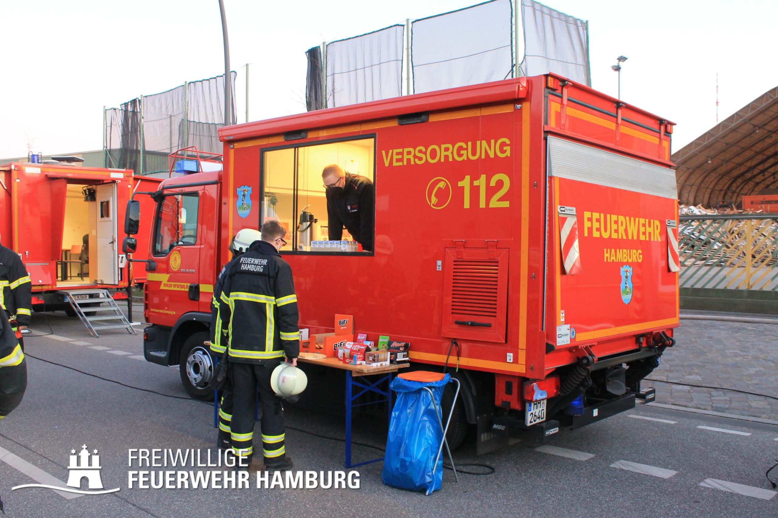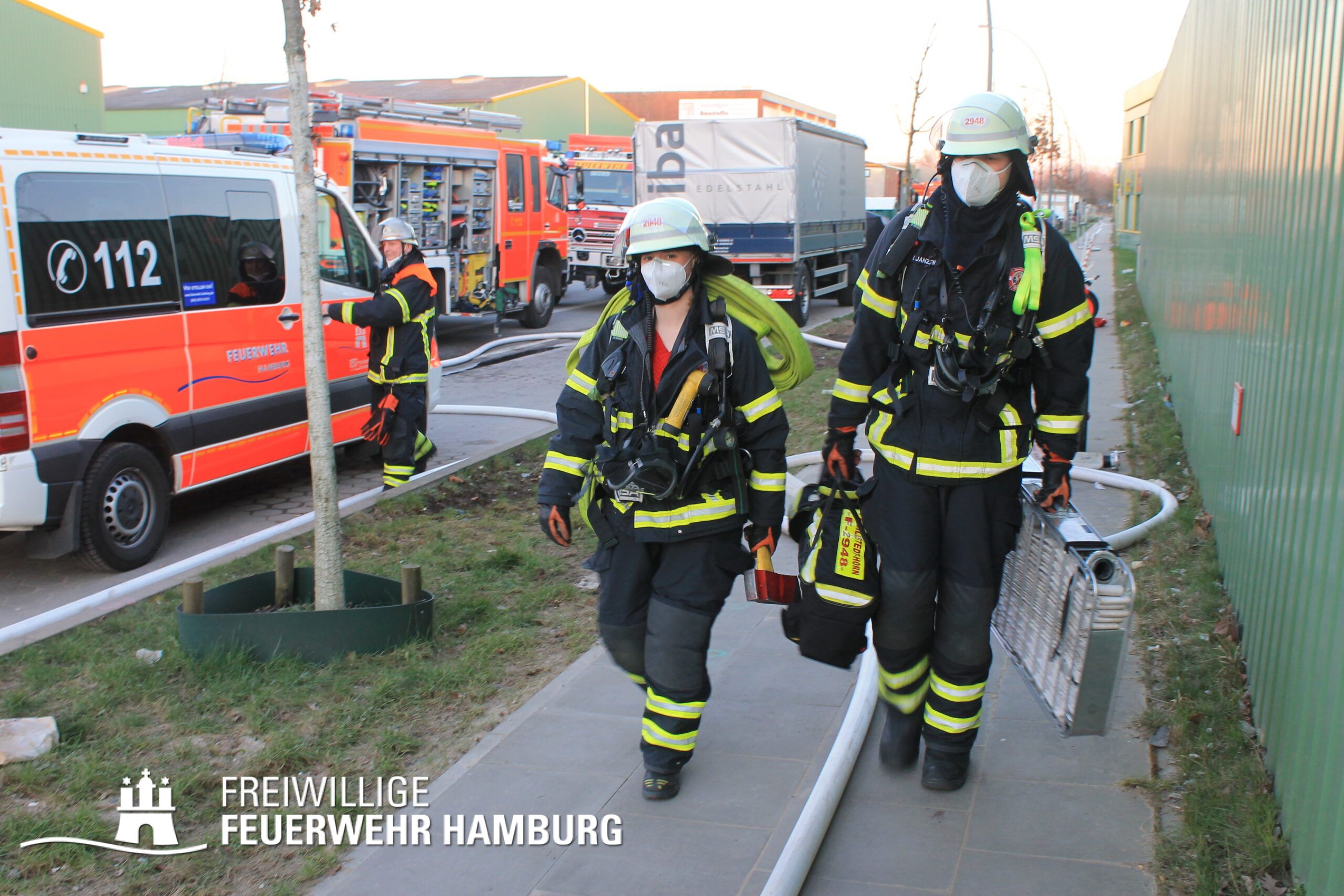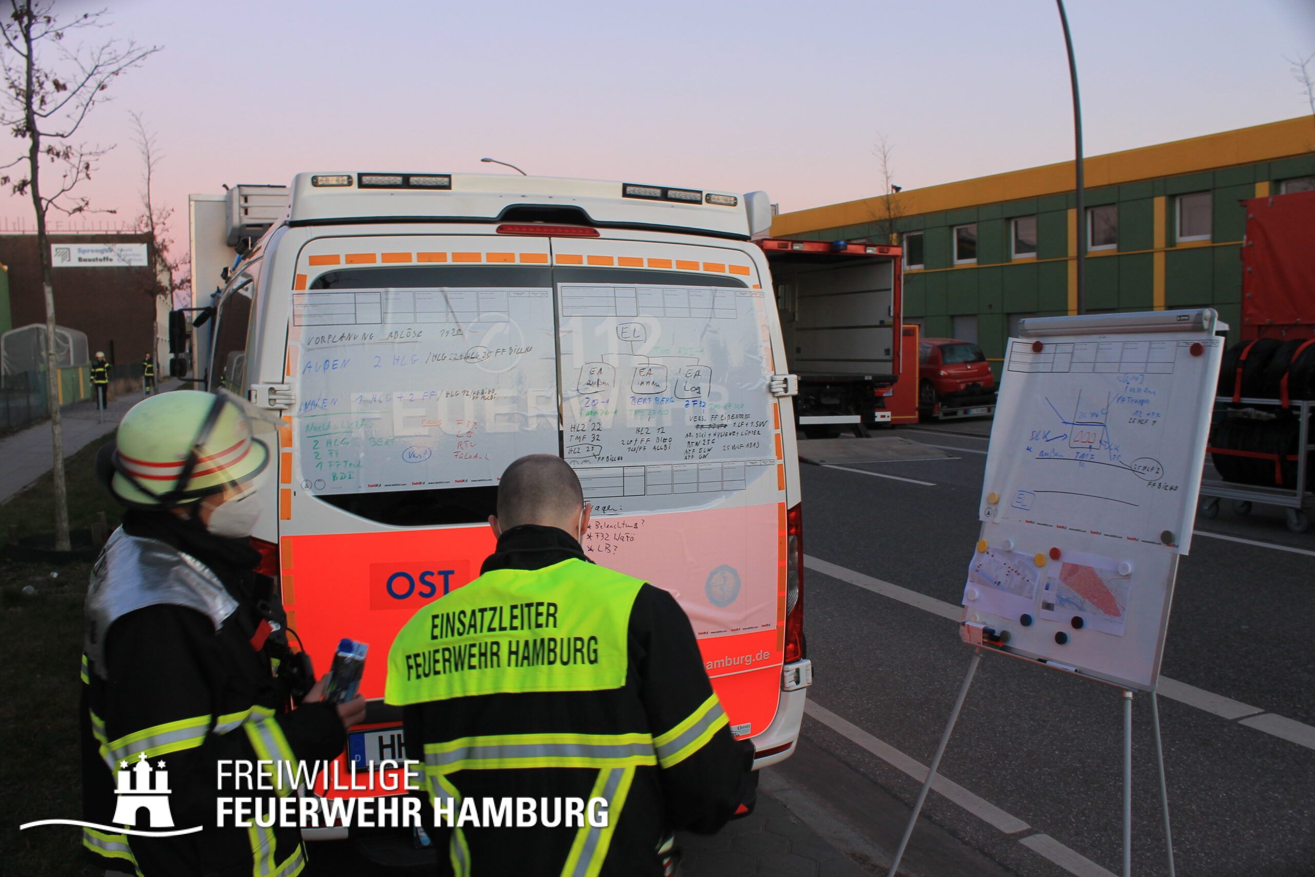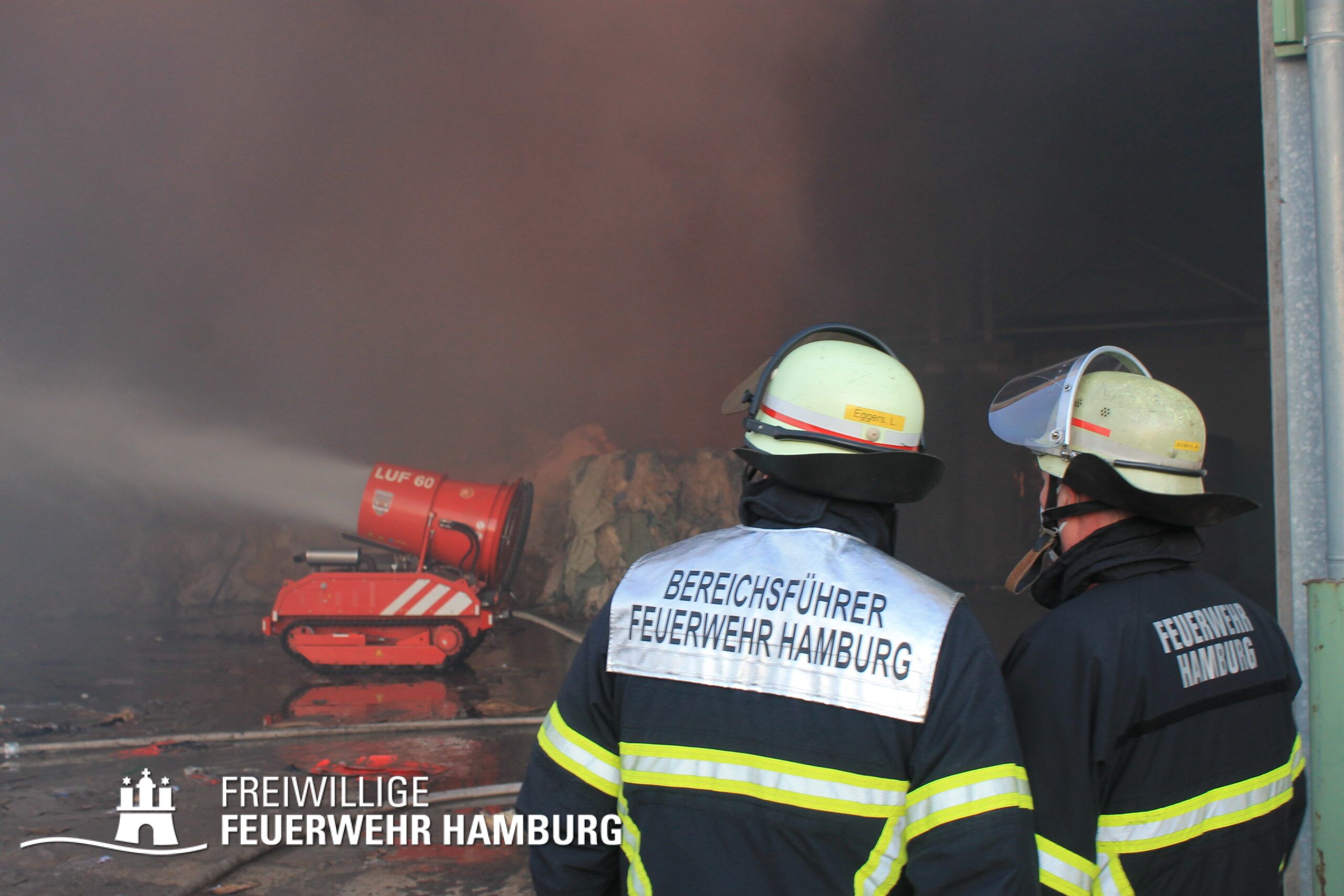 Neben dem Bereichsführer Bergedorf und Vierlande, welche für die Einsatzleitung seitens der Freiwilligen Feuerwehr vor Ort waren, unterstützte die FF Bille und Berliner Tor mit ihrem Personal sowie den GW-FM und dem Anhänger Führung und Lage. Die Wehren Billstedt Horn und Allermöhe Billwerder wurden zur direkten Brandbekämpfung eingesetzt. Für eine ausreichende Wasserversorgung sorgten die FF Fünfhausen und FF Barmbek mit ihren Schlauchwagen. Um Umweltgefahren in der Luft auszuschließen wurden die FF Lohbrügge und FF Bergedorf mit ihren CBRN Erkundern für Messfahrten in der Umgebung alarmiert. Die FF Warwisch sorgte mit ihrem Lichtmastanhänger für ausreichende Beleuchtung an der Einsatzstelle. Für die Versorung der Einsatzkräfte setzte die FF Eißendorf ihren GW-Versorgung ein und stellte Snacks und Getränke zur Verfügung.