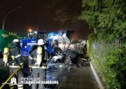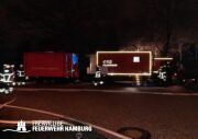 Für eine ausreichende Wasserversorgung sorgten die FF Lokstedt und Barmbek mit ihren Schlauchwagen. Damit auch die Einsatzkräfte mit Snacks versorgt werden konnten, baute die FF Eissendorf im Bereitstellungsraum einen Verpflegungspunkt mit dem GW-Versorgung auf.