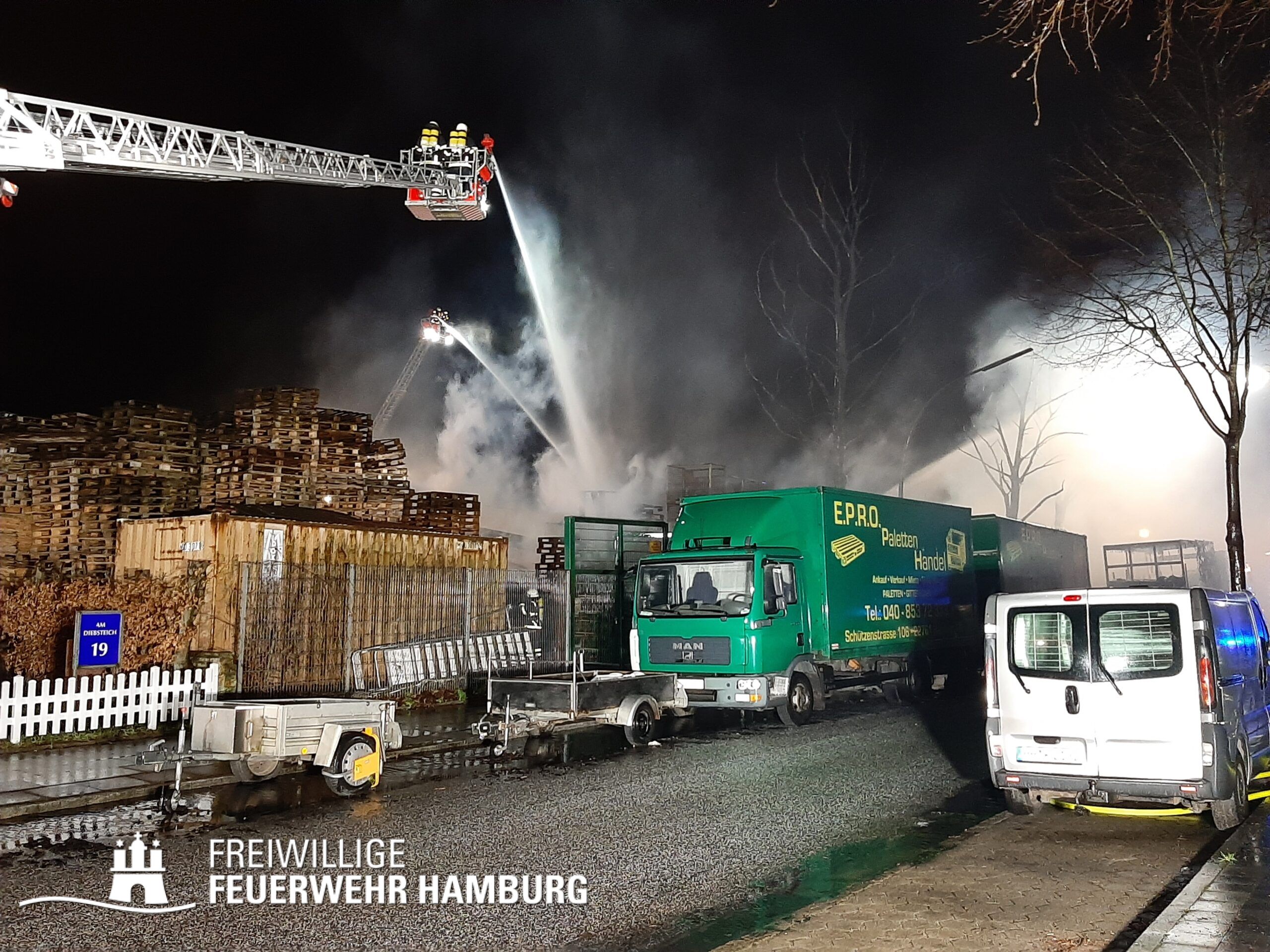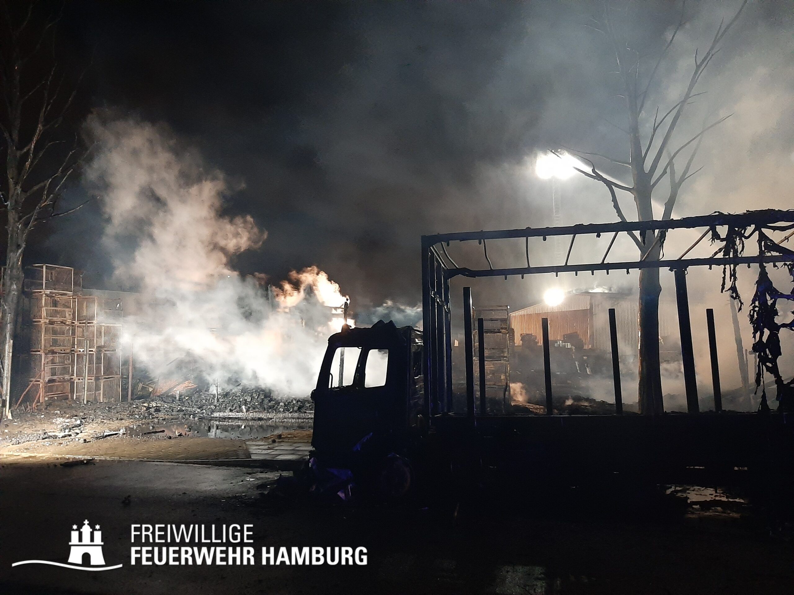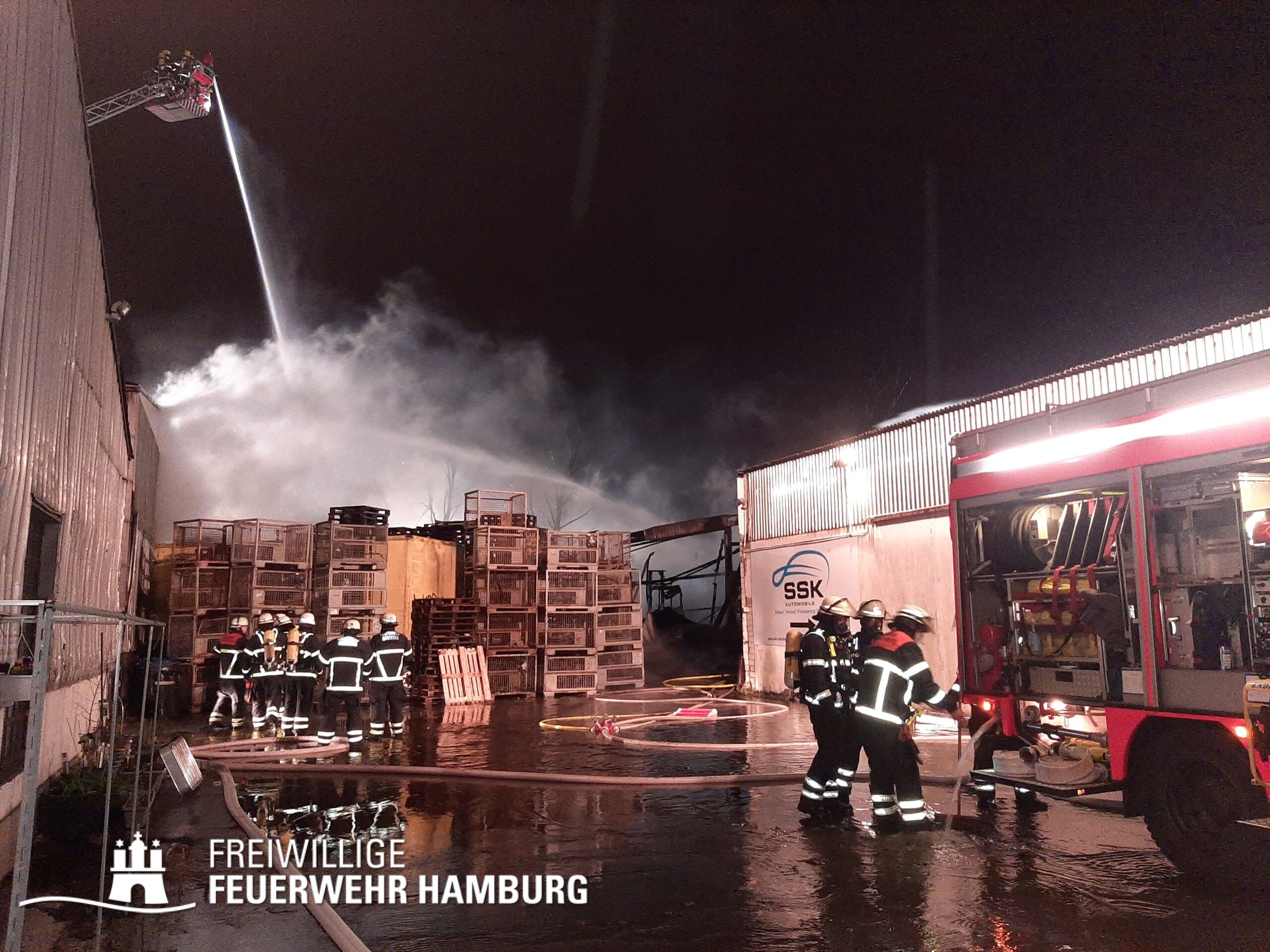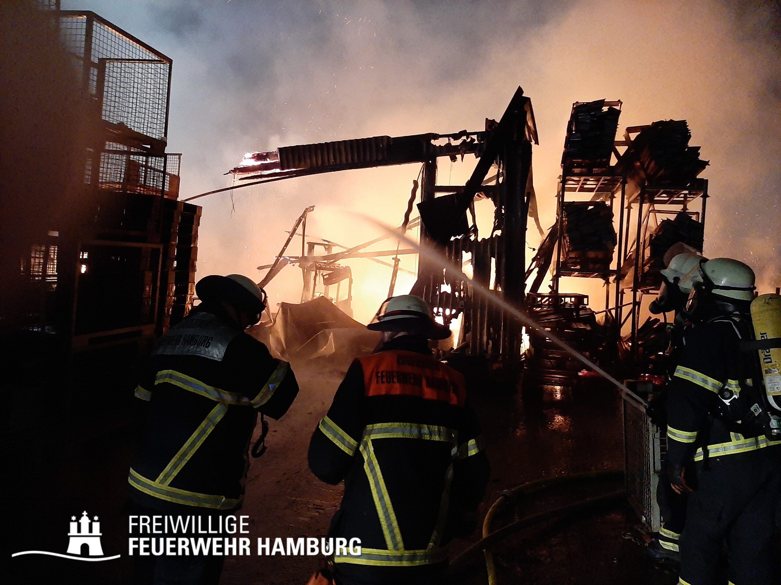 FEU5: Großbrand von Palettenlager und Lagerhalle in Bahrenfeld