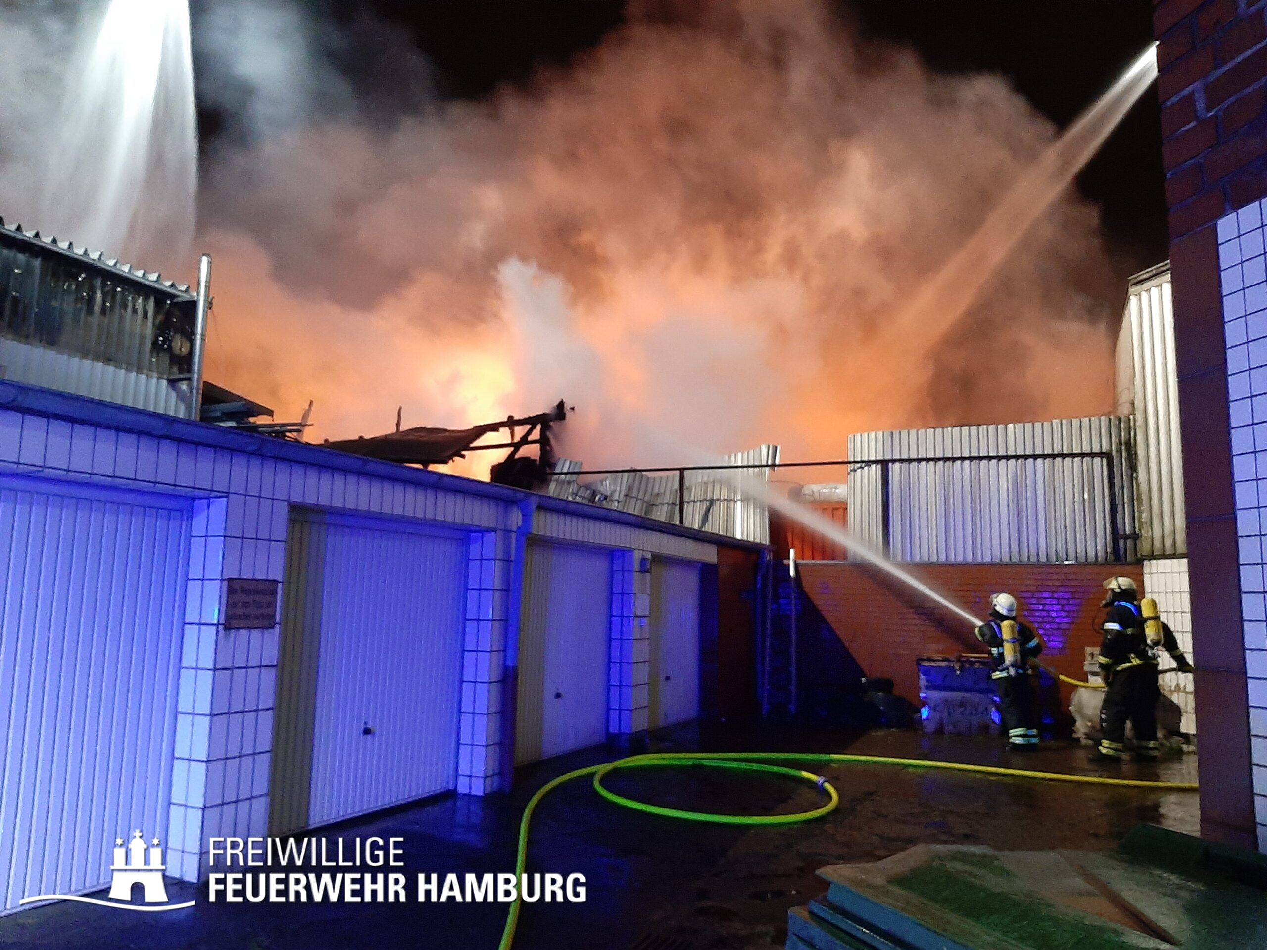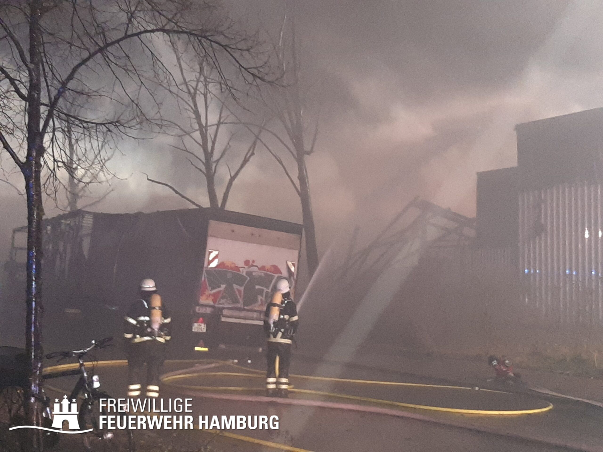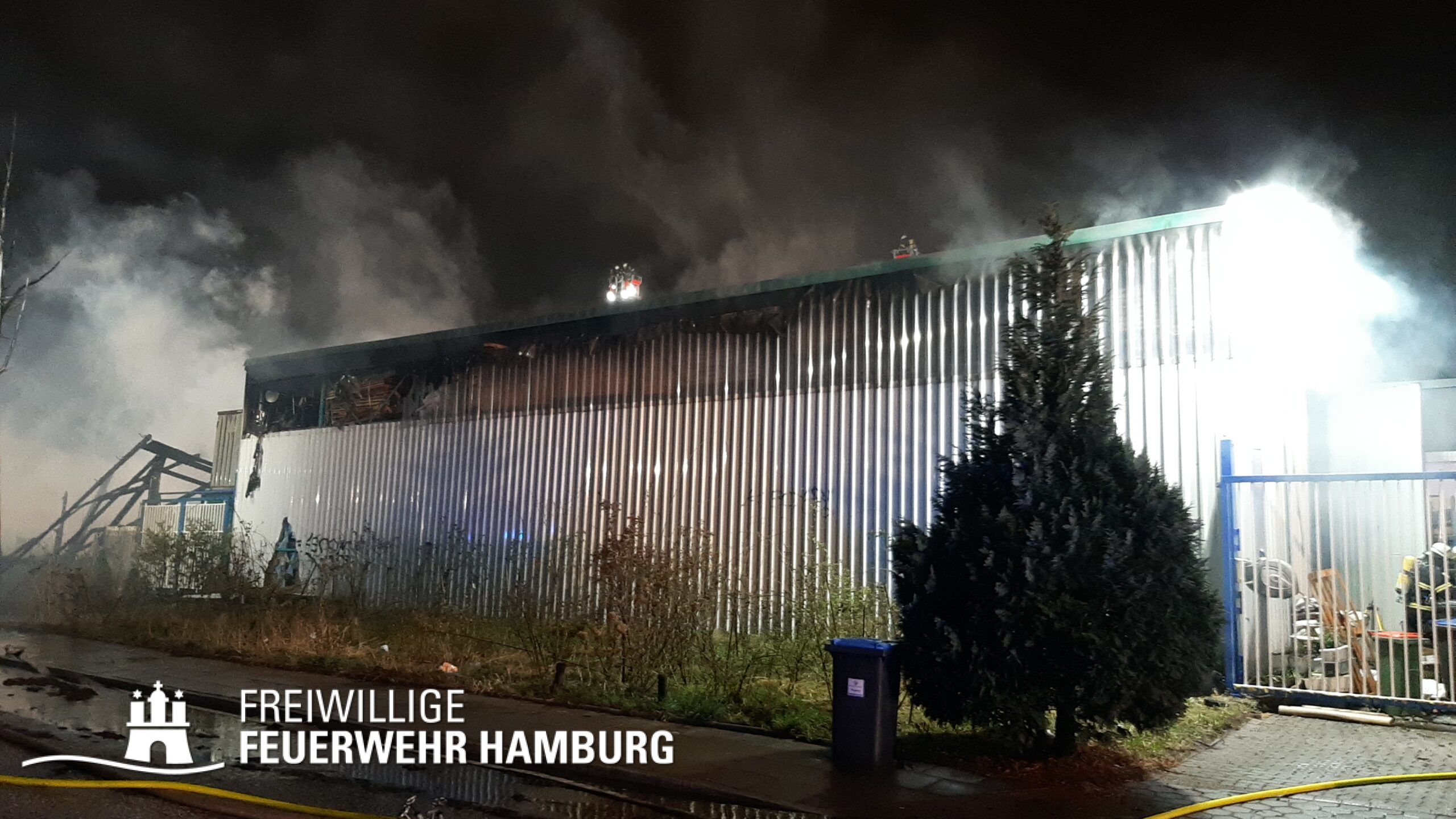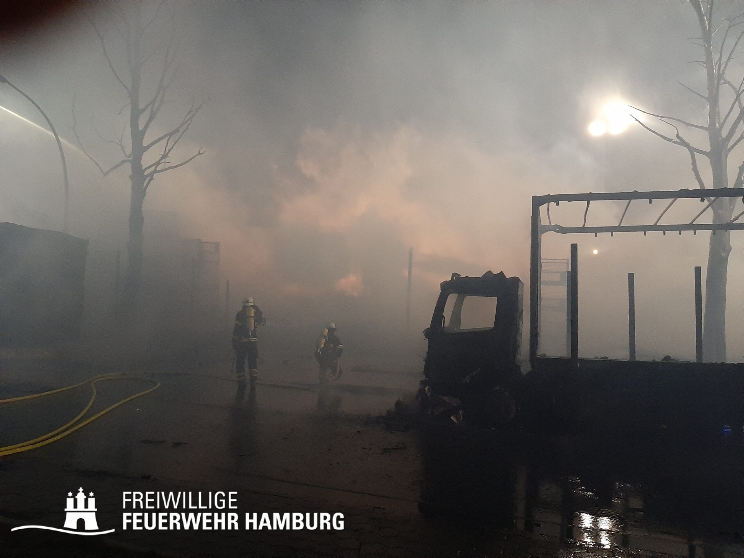 FEU5: Großbrand von Palettenlager und Lagerhalle in Bahrenfeld